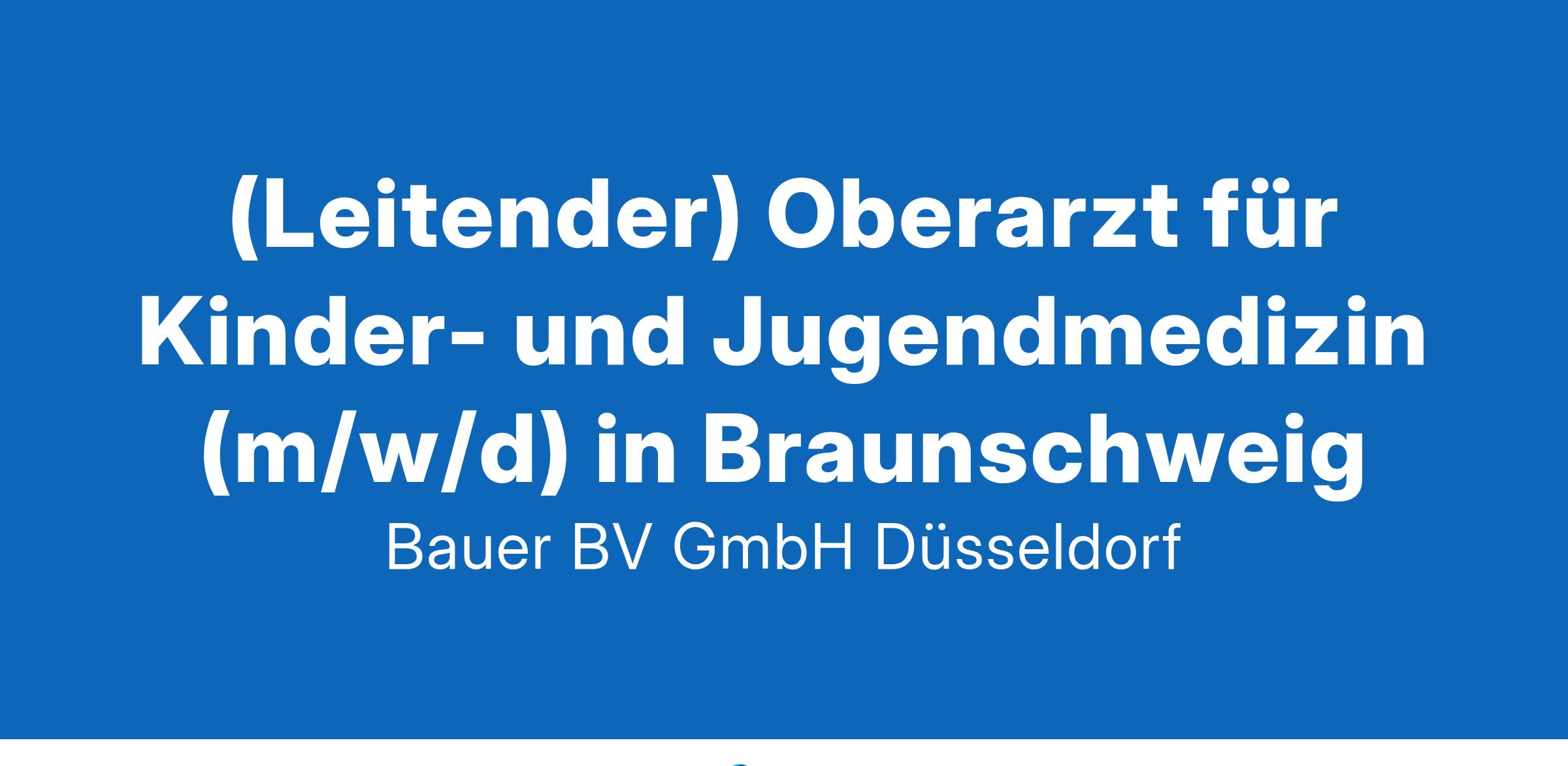 Anstellungsart(en): VollzeitIhr neuer Arbeitsplatz:Krankenhaus der Schwerpunktversorgung mit rund 400 Betten im Raum Braunschweig. Die Klinik für Kinder- und Jugendmedizin behandelt jährlich rund 3.000 kleine Patienten stationär und knapp 7.000 ambulant.Ihre Vorteile:Attraktive Klinik mit breitem fachlichem SpektrumInteressantes AufgabenspektrumFreundliches und engagiertes TeamUnterstützung von Fort- und WeiterbildungenAttraktive VergütungUnbefristete Festanstellung mit PerspektiveIhr Profil:Facharzt (m/w/d) für Kinder- und JugendmedizinGerne Erfahrung in der NeonatologieEngagement und TeamfähigkeitIhr Ansprechpartner:Bauer B+V Personalberatung