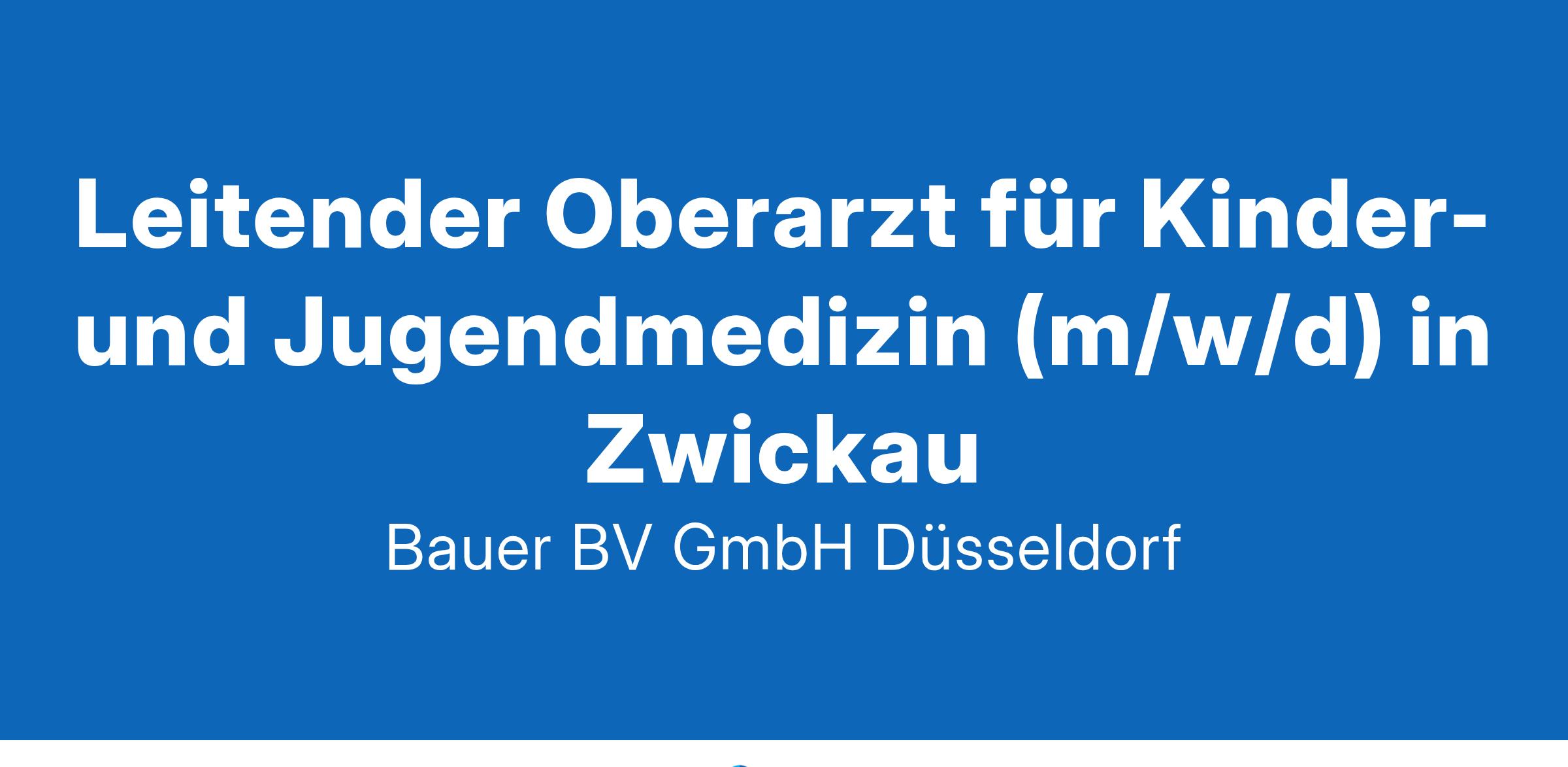 Anstellungsart(en): VollzeitIhr neuer Arbeitsplatz:Akutkrankenhaus der Regelversorgung mit rund 300 Betten in Raum Zwickau. Die Klinik für Kinder- und Jugendmedizin betreut Patienten der Neonatologie sowie Patienten aus den pädiatrischen, chirurgischen, unfallchirurgischen Bereichen und HNO-Patienten. Gemeinsam mit der Frauenklinik werden jährlich ca. 700 Geburten betreut. Zum Klinikum gehören zudem zwei Kinderarztpraxen.Ihre Vorteile:Moderne Klinik mit breitem fachlichem SpektrumAttraktiver und verantwortungsvoller ArbeitsplatzFreundliches und engagiertes TeamUnterstützung von Fort- und WeiterbildungenAttraktive VergütungUnbefristete Festanstellung mit PerspektiveIhr Profil:Facharzt (m/w/d) für Kinder- und JugendmedizinFundierte Kenntnisse im FachbereichEngagement und TeamfähigkeitIhr Ansprechpartner:Bauer B+V Personalberatung