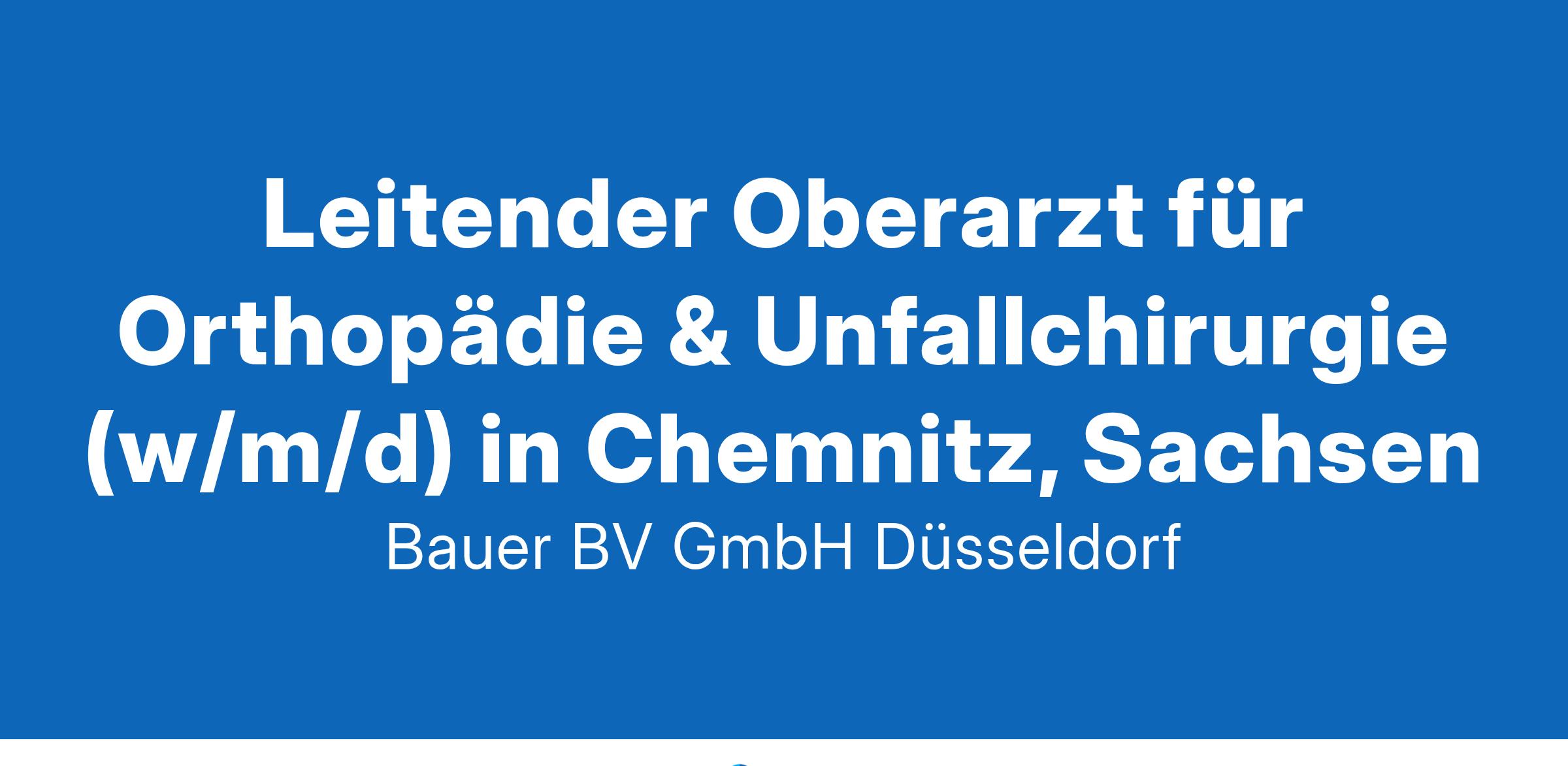 Anstellungsart(en): VollzeitIhr neuer Arbeitsplatz:Akademisches Lehrkrankenhaus mit 350 Betten im Raum Chemnitz. Die Orthopädie und Unfallchirurgie genießt in der Versorgung schwerverletzter Patienten mit dem zertifizierten regionalen Traumazentrum einen ausgezeichneten Ruf. Mit der Zulassung zum Verletztenartenverfahren (VAV) der Berufsgenossenschaften stellt die Klinik die Versorgung von Patienten mit schweren Arbeitsunfällen sicher. Das zertifizierte Endoprothesenzentrum (EPZ) hat bei steigenden Patientenzahlen noch weiteres Entwicklungspotential.Ihre Vorteile:Verantwortungsvolle AufgabeÜbertarifliche VergütungAngenehmes ArbeitsklimaInterne und externe SupervisionUnbefristete Anstellung mit PerspektiveIhr Profil:Facharzt für Orthopädie und Unfallchirurgie (m/w/d)Gerne erfahrung in Spezieller Unfallchirurgie und/oder spezielle orthopädische ChirurgieEngagement und TeamfähigkeitIhr Ansprechpartner:Bauer B+V Personalberatung