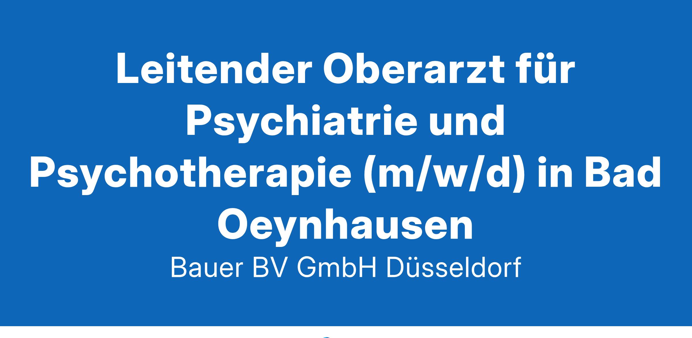 Anstellungsart(en): VollzeitIhr neuer Arbeitsplatz:Psychiatrische Fachklinik im Raum Hameln mit 110 psychiatrischen und 80 psychosomatischen Betten. Zudem werden knapp 70 teilstationäre Plätze und zwei Institutsambulanzen betreut. Das Behandlungs-Spektrum umfasst sämtliche Erkrankungen der Psychiatrie und Psychosomatik mit schulen-übergreifendem Ansatz in einem integrativen Behandlungskonzept.Ihr Aufgabenbereich:Versorgug der Patienten im stationären BereichAusbildung der AssistenzärzteZusammenarbeit mit KooperationspartnernIhre Vorteile:Verantwortungsvoller und abwechslungsreicher ArbeitsplatzSehr gut ausgebildetes, multiprofessionelles TeamUnterstützung beim PromotionswunschRegelmäßige SupervisionEntlastung von nichtärztlichen TätigkeitenFamiliäres BetriebsklimaAttraktive VergütungUnbefristete Festanstellung mit PerspektiveIhr Profil:Facharzt für Psychiatrie und Psychotherapie (m/w/d)Fundierte Kenntnisse im FachbereichGerne störungsspezifische QualifikationenEngagement und soziale KompetenzIhr Ansprechpartner:Bauer B+V Personalberatung