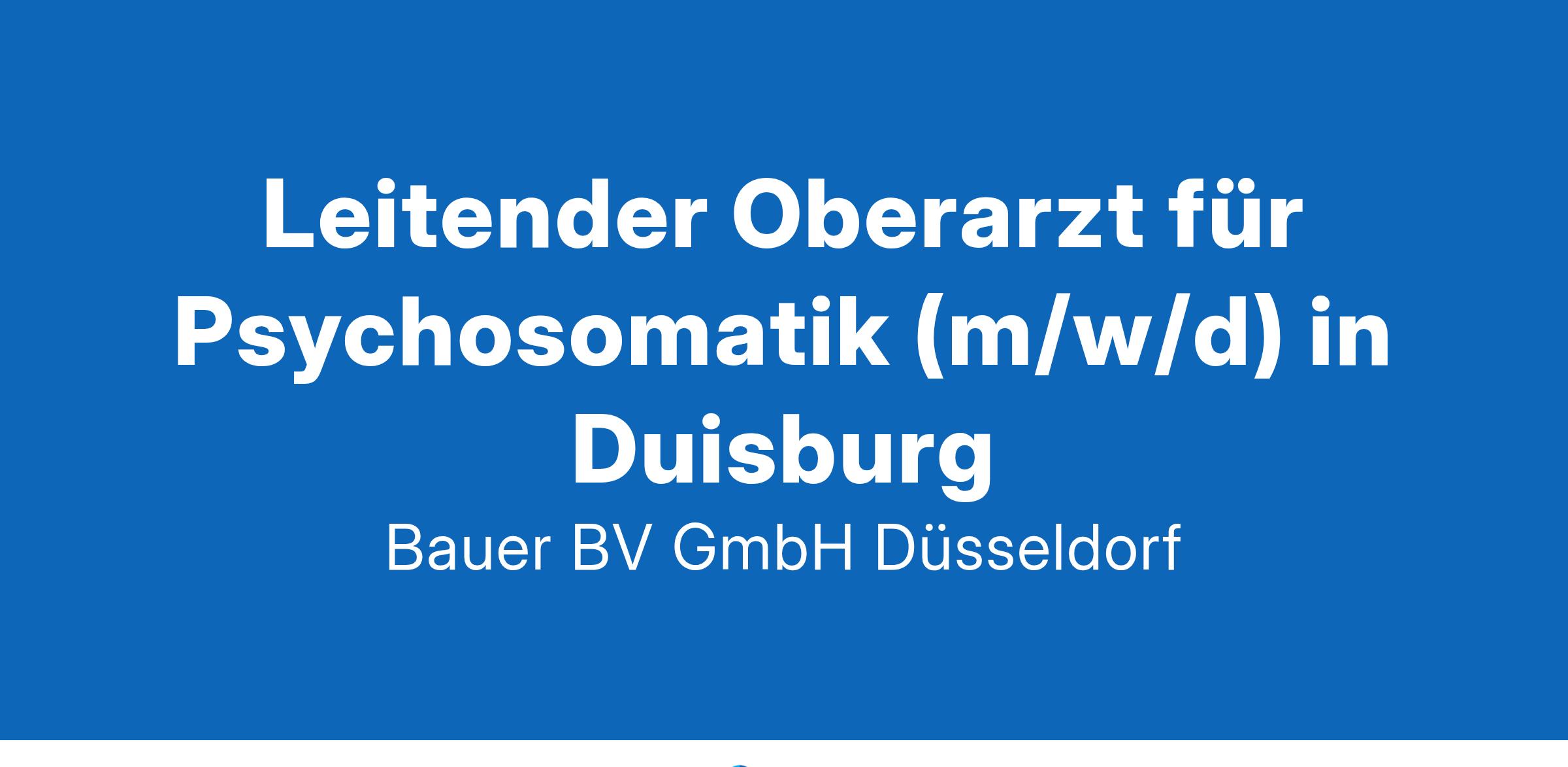Standort: DuisburgIhr neuer Arbeitsplatz:In der Klinik für Psychosomatische Medizin und Psychotherapie im Raum Duisburg erwartet Sie ein innovatives und interdisziplinär ausgerichtetes Arbeitsumfeld. Mit 39 Behandlungsplätzen und integrierter Tagesklinik wird eine umfassende Betreuung angeboten, die auf einem integrativen Konzept basiert und psychodynamische Prinzipien mit modernen Therapieansätzen vereint. Das Behandlungsteam setzt auf eine multimodale Herangehensweise, die neben Einzel- und Gruppentherapie auch kreative und körperorientierte Verfahren wie Musik- und Kunsttherapie umfasst. Zum weiteren Ausbau der Abteilung suchen wir einen Leitenden Oberarzt für Psychosomatik (m/w/d).Ihre Vorteile:Ein abwechslungsreiches und spannendes Arbeitsumfeld mit viel Raum für MitgestaltungVertretung des ChefarztesVerantwortung für die psychosomatische und psychotherapeutische Betreuung der PatientenLeitung interdisziplinärer TeambesprechungenRegelmäßige interne und externe SupervisionEnge Zusammenarbeit und Austausch mit anderen Fachabteilungen des KlinikumsAttraktive Vergütung bei unbefristeter AnstellungIhr Profil:Facharzt (m/w/d) für Psychosomatische Medizin und PsychotherapiePsychodynamische TherapieausrichtungLeidenschaft für die psychosomatische und psychotherapeutische ArbeitInteresse an Weiterentwicklung der AbteilungFührungserfahrung und VerantwortungsbewusstseinIhr Ansprechpartner:Bauer B+V Personalberatung