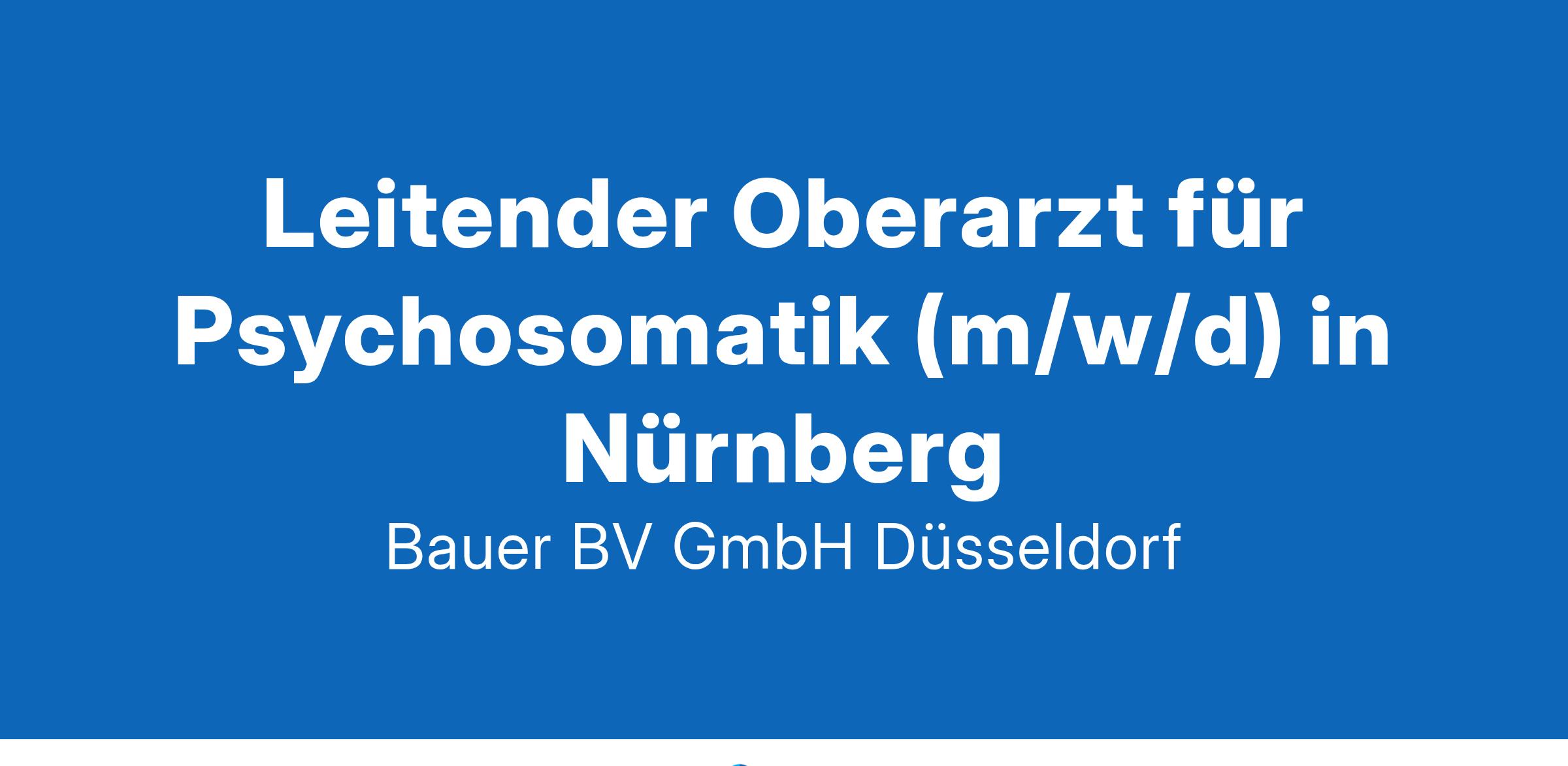 Standort: NürnbergIhr neuer Arbeitsplatz:In der Klinik für Psychosomatische Medizin und Psychotherapie im Raum Nürnberg erwartet Sie ein innovatives und interdisziplinär ausgerichtetes Arbeitsumfeld. Mit 39 Behandlungsplätzen und integrierter Tagesklinik wird eine umfassende Betreuung angeboten, die auf einem integrativen Konzept basiert und psychodynamische Prinzipien mit modernen Therapieansätzen vereint. Das Behandlungsteam setzt auf eine multimodale Herangehensweise, die neben Einzel- und Gruppentherapie auch kreative und körperorientierte Verfahren wie Musik- und Kunsttherapie umfasst. Zum weiteren Ausbau der Abteilung suchen wir einen Leitenden Oberarzt für Psychosomatik (m/w/d).Ihre Vorteile:Ein abwechslungsreiches und spannendes Arbeitsumfeld mit viel Raum für MitgestaltungVertretung des ChefarztesVerantwortung für die psychosomatische und psychotherapeutische Betreuung der PatientenLeitung interdisziplinärer TeambesprechungenRegelmäßige interne und externe SupervisionEnge Zusammenarbeit und Austausch mit anderen Fachabteilungen des KlinikumsAttraktive Vergütung bei unbefristeter AnstellungIhr Profil:Facharzt (m/w/d) für Psychosomatische Medizin und PsychotherapiePsychodynamische TherapieausrichtungLeidenschaft für die psychosomatische und psychotherapeutische ArbeitInteresse an Weiterentwicklung der AbteilungFührungserfahrung und VerantwortungsbewusstseinIhr Ansprechpartner:Bauer B+V Personalberatung
