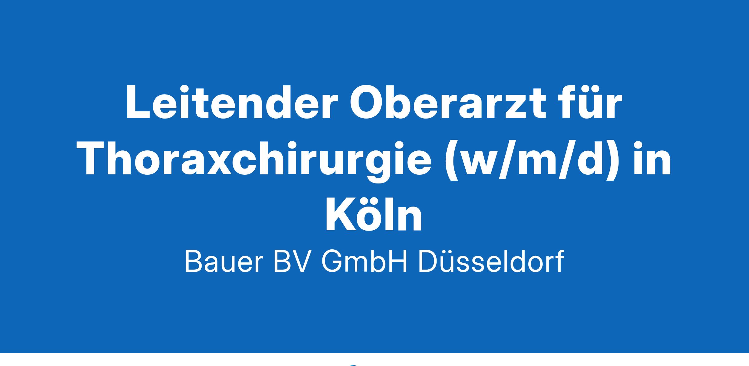 Anstellungsart(en): VollzeitIhr neuer Arbeitsplatz:Akademisches Lehrkrankenhaus mit rund 650 Betten im Raum Köln. Die Klinik für Thoraxchirurgie versorgt alle Erkrankungen der Atmungsorgane inkl. interstitieller Lungengerüsterkrankungen, Lähmungen & Hochstand des Zwerchfells sowie Krebserkrankungen und komplexe Allergien mit hoher Fachkompetenz und modernsten Verfahren.Ihre Vorteile:Verantwortungsvolle AufgabeVertretung des ChefarztesAusbau und Weiterentwicklung der LungenklinikAusbildung der AssistenzärzteModerne AusstattungAngenehmes ArbeitsklimaAttraktive VergütungUnbefristete Anstellung in VollzeitIhr Profil:Facharzt (w/m/d) für ThoraxchirurgieBeherrschung der thoraxchirurgischen Standard-OperationenExpertise in der minimalinvasiven und septischen ThoraxchirurgieGerne Erfahrung in roboter-assistierter ChirurgieEngagement und TeamfähigkeitIhr Ansprechpartner:Bauer B+V Personalberatung