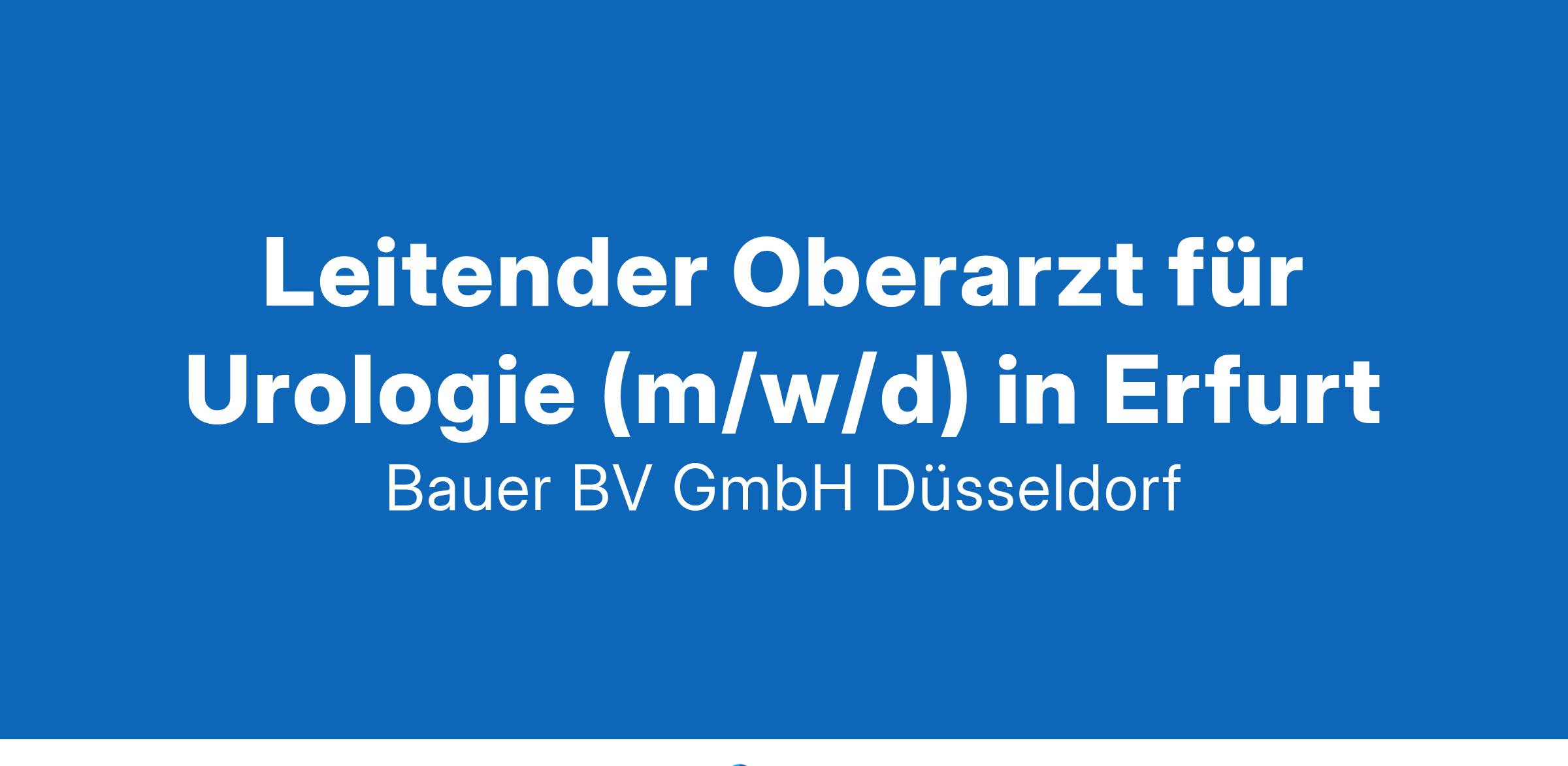 Anstellungsart(en): VollzeitIhr neuer Arbeitsplatz:Akademisches Lehrkrankenhaus mit knapp 200 Betten in der Region Erfurt. Die Klinik für Urologie behandelt jährlich stationär und ambulant je knapp 1000 Patienten auf dem gesamten Gebiet der Urologie. Schwerpunkte der Klinik bilden die große Tumorchirurgie und transurethrale Eingriffe. Zusätzlich gehören alle Formen der kontinenten Harnableitung zum Spektrum. Auf endourologischem Gebiet werden alle Operationen (TURB, TURP, URS, PNL) durchgeführt.Ihre Vorteile:Attraktiver Arbeitsplatz mit abwechslungsreicher TätigkeitSelbstständige Durchführung von OperationenUnterstützung des ChefarztesKonsiliarische interdisziplinäre PatientenversorgungSupervision sowie Aus- und Weiterbildung der Assistenz- und FachärztFörderung innerbetrieblicher und externer WeiterbildungsmöglichkeitenFreundliches und engagiertes TeamAttraktive VergütungUnbefristete FestanstellungIhr Profil:Facharzt (m/w/d) für UrologieOperative Erfahrung mit einer fundierten theoretischen und praktischen AusbildungEngagement und TeamfähigkeitIhr Ansprechpartner:Bauer B+V Personalberatung