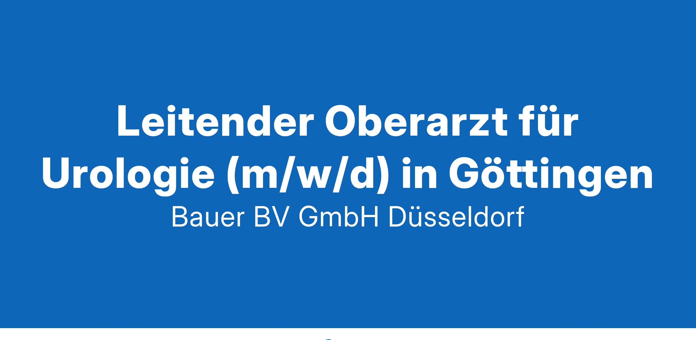 Anstellungsart(en): VollzeitIhr neuer Arbeitsplatz:Krankenhaus der Maximalversorgung mit über 1000Betten im Raum Göttingen. Die Klinik deckt das komplette Spektrum der Urologie und Uroonkologie ab. Schwerpunkte dabei sind die großen onkologischen Operationen, minimal invasive Chirurgie mit 3D Turm und dem XI Da-Vinci-Roboter. Die Klinik bietet alle gängigen medikamentösen Tumortherapien an.Ihre Vorteile:Attraktiver und moderner ArbeitsplatzVerantwortungsvolle AufgabenBetreuung, Diagnostik und Behandlung der Patienten*innenSupervision und Ausbildung der in der Weiterbildung befindlichen Assistenzärzte*innenFreundliches und engagiertes TeamSehr gutes ArbeitsklimaUnterstützung bei Fort -und WeiterbildungenAttraktive Vergütung mit betrieblicher AltersvorsorgeUnbefristete FestanstellungIhr Profil:Facharzt (m/w/d) für UrologieErfahrung in den minimalinvasiven und roboterassistierten OperationstechnikenEngagement und TeamfähigkeitIhr Ansprechpartner:Bauer B+V Personalberatung