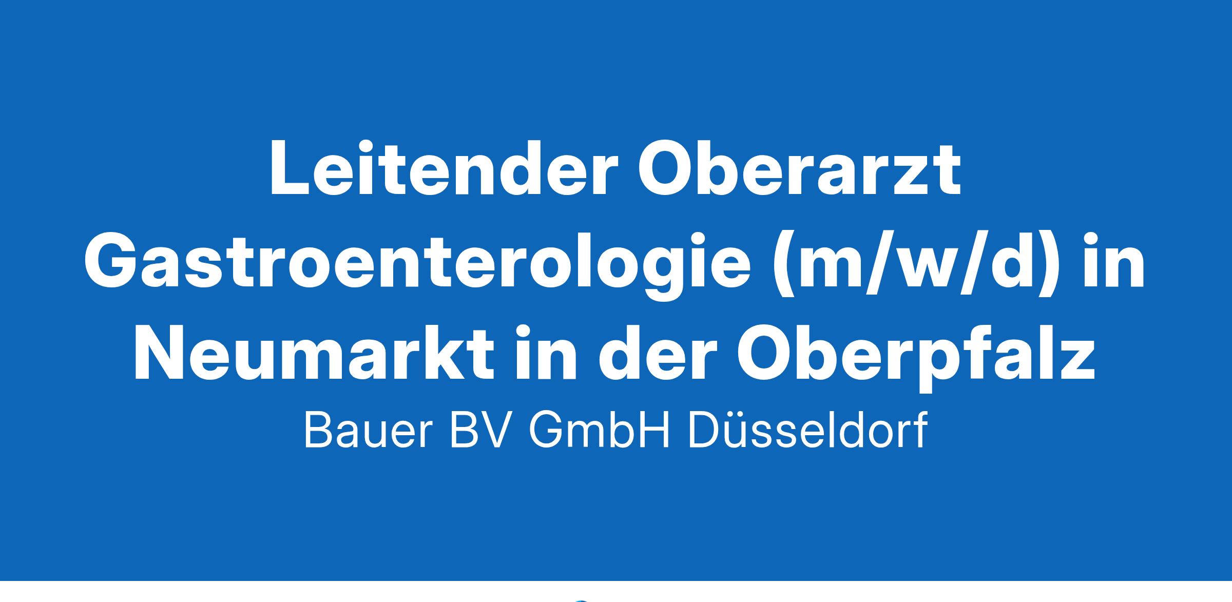 Leitender Oberarzt Gastroenterologie (m/w/d)Stellen-ID: 2752 Standort: Neumarkt in der Oberpfalz Anstellungsart(en): VollzeitIhr neuer Arbeitsplatz:Akademisches Lehrkrankenhaus mit rund 200 Betten im Raum Neumarkt in der Oberpfalz. Die Abteilung für Gastroenterologie behandet auf 40 Betten jährlich knapp 1.500 Patienten. Dabei wird ein modernes und umfangreiches ambulantes und stationäres Spektrum inkl. EMR, ESD, E-FTRD und OTSC angeboten.Ihre Vorteile:Verantwortungsvolle LeitungsfunktionWeiterentwicklung der AbteilungEinbringung eigener SchwerpunkteKompetentes und freundliches TeamInterdisziplinäre Zusammenarbeit mit anderen FachabteilungenGroßzügige Fort- und WeiterbildungsmöglichkeitenAttraktive Vergütung inkl. betrieblicher AltersvorsorgeUnbefristete FestanstellungIhr Profil:Facharzt (m/w/d) für Innere Medizin und GastroenterologieFundierte Kenntnisse im FachbereichBerufserfahrung in leitender FunktionEngagement und TeamfähigkeitIhr Ansprechpartner:Bauer B+V Personalberatung Frau Lena Schwarz Grafenberger Allee Jetzt bewerbenDüsseldorfT.: 0211 - Jetzt bewerbenE.: Jetzt bewerben