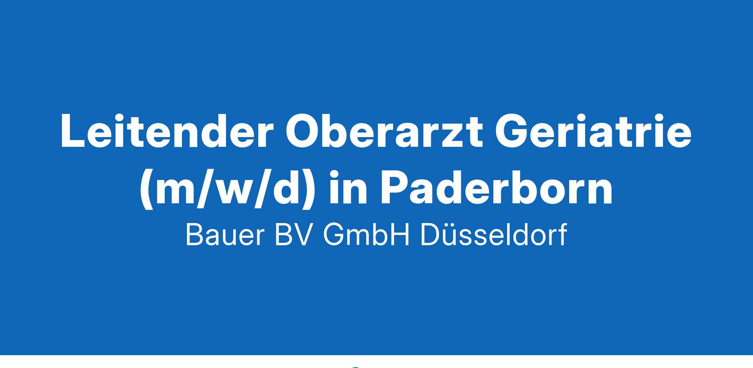 Beschäftigungsbeginn: Jetzt bewerbenIhr neuer Arbeitsplatz:Die geriatrische Fachklinik im Raum Paderborn verfügt über 120 Betten und eine angeschlossene Tagesklinik. Sie ist Teil des altersmedizinischen Zentrums am Standort mit eigener Physio- und Ergotherapie sowie einem Seniorenhaus. Behandlungsschwerpunkte sind die Akutgeriatrie, die internistische Altersmedizin sowie die Frührehabilitation. Die Klinik ist als akademisches Lehrkrankenhaus modern und auch personell sehr gut ausgestattet. Im Rahmen der geregelten Nachfolgeregelung suchen wir zum Januar 2024 einen Leitenden Oberarzt (m/w/d).Ihre Vorteile:Spannende und verantwortungsvolle TätigkeitVertretung der ChefärztinWeiterentwicklung der KlinikGroßer Gestaltungs- und HandlungsspielraumAus- und Weiterbildung des ÄrzteteamsHohes fachliches NiveauFreundliches, engagiertes und interdisziplinäres TeamAttraktive, übertarifliche VergütungUnbefristete FestanstellungIhr Profil:Facharzt (m/w/d) für Innere Medizin oder AllgemeinmedizinZusatzbezeichnung GeriatrieLangjährige praktische Erfahrung im FachbereichIhr Ansprechpartner:Bauer B+V Personalberatung