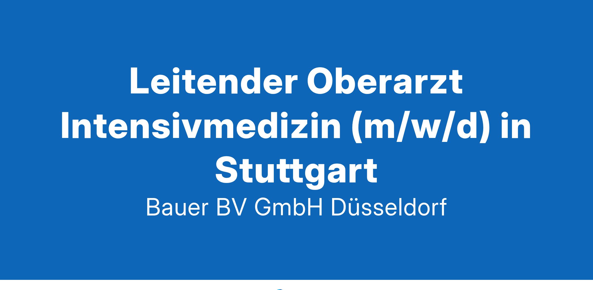 Anstellungsart(en): Teilzeit, VollzeitIhr neuer Arbeitsplatz:Krankenhaus der Zentral- und Regelversorgung mit knapp 300 Betten in der Region Stuttgart. Die Abteilung der interdisziplinären Intensivstation verfügt über 10 Intensivbetten und 3 IMC-Betten dazu gehört eine lokale Stroke-Unit Einheit mit 6 Betten.Ihre Vorteile:Hochmoderner Arbeitsplatz mit neuer Ausstattungu.a. Sonographie, Echokardiographie, EndoskopieVerantwortungsvolle AufgabenBetreuung aller intensivmedizinisch zu behandelnden PatientenEtablierung und Weiterentwicklung intensivmedizinischer StandardsKooperation mit anderen FachabteilungenAusbildung der AssistenzärzteGroßer GestaltungsbereichFreundliches, menschliches und teamorientiertes BetriebsklimaZahlreichen EntwicklungsmöglichkeitenUnterstützung und Förderung von Weiterbildungenz.B. auf dem Gebiet der Gastroenterologie und KardiologieAttraktive VergütungUnbefristete Festanstellung in Voll- oder TeilzeitIhr Profil:Facharzt (m/w/d) für Innere MedizinZusatzbezeichnung Internistische IntensivmedizinMehrjährige klinische BerufserfahrungEngagement und TeamfähigkeitIhr Ansprechpartner:Bauer B+V Personalberatung