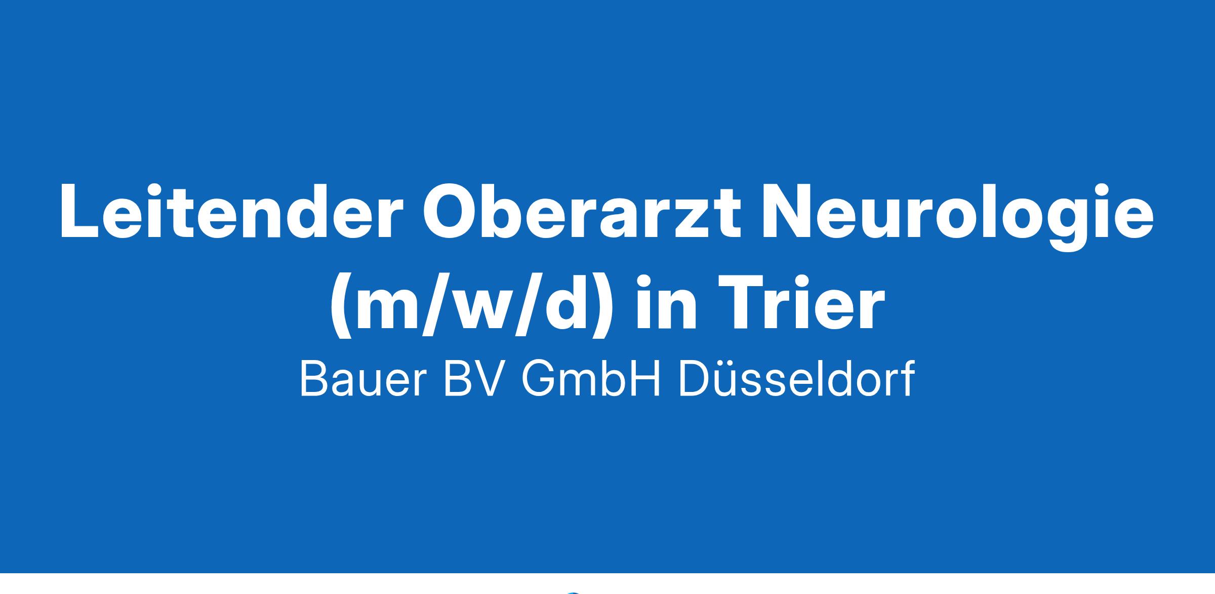 Anstellungsart(en): VollzeitIhr neuer Arbeitsplatz:Krankenhaus für Rehabilitation mit knapp 550 Betten im Raum Trier. Die Klinik für Neurologie bietet eine hochmoderne, ganzheitliche und kompetente Versorgung im gesamten Fachbereich.Ihre Vorteile:Renommierte neurologische KlinikBreites BehandlungsspektrumSchlaganfall / Stroke UnitParkinson-SyndromMultiple SkleroseGuillan-Barré-SyndromRückenmarksverletzungenPolyneuropathieAbwechslungsreiche und verantwortungsvolle TätigkeitFreundliches, offenes TeamAttraktive VergütungUnbefristete Festanstellung mit PerspektiveIhr Profil:Facharzt für Neurologie (m/w/d)Exzellente Kenntnisse im FachbereichProfessionelles Kommunikationsverhalten und eine gewissenhafte ArbeitsweiseEngagement und soziale KompetenzIhr Ansprechpartner:Bauer B+V Personalberatung