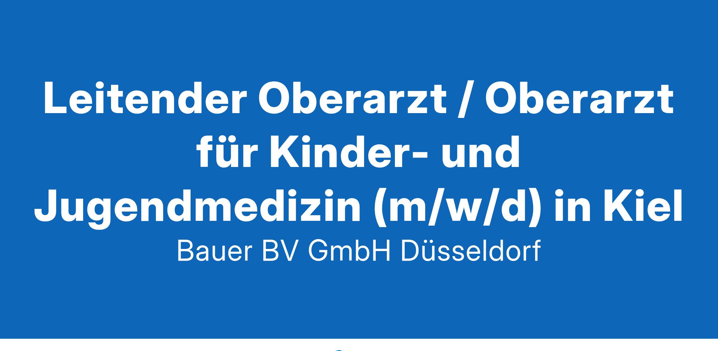 Anstellungsart(en): VollzeitIhr neuer Arbeitsplatz:Akademisches Lehrkrankenhaus mit rund 700 Betten in Raum Kiel. Die Klinik für Kinder- und Jugendmedizin verfügt über 36 stationäre und 4 tagesstationäre Betten sowie eine interdisziplinäre Kinder- und Neugeborenenintensivstation mit 8 Beatmungsplätzen. Bei jährlich ca. 1.300 Geburten ein Perinatalzentrum Level II etabliert. Die Klinik versorgt jährlich ca. 3.100 Patienten stationär bzw. ca. 6.500 Notfallpatienten ambulant. Besondere Schwerpunkte sind die Neonatologie, die Kindergastroenterologie sowie die Kinderendokrinologie und -diabetologie.Ihre Vorteile:Attraktive Klinik mit breitem fachlichem SpektrumInteressantes AufgabenspektrumVersorgung der PatientenEnge Zusammenarbeit mit allen FachdisziplinenFachärztliche Supervision der WeiterbildungsassistentenVertretung der Chefärztin in deren AbwesenheitFreundliches und engagiertes TeamOption der ChefarztnachfolgeUnterstützung von Fort- und WeiterbildungenSchwerpunkt Neonatologie (12 Monate)Attraktive VergütungUnbefristete Festanstellung mit PerspektiveIhr Profil:Facharzt (m/w/d) für Kinder- und JugendmedizinFundierte Kenntnisse im FachbereichGerne Weiterbildung Neonatologie, pädiatrische Intensivmedizin, Kinderkardiologie etc.Engagement und TeamfähigkeitIhr Ansprechpartner:Bauer B+V Personalberatung