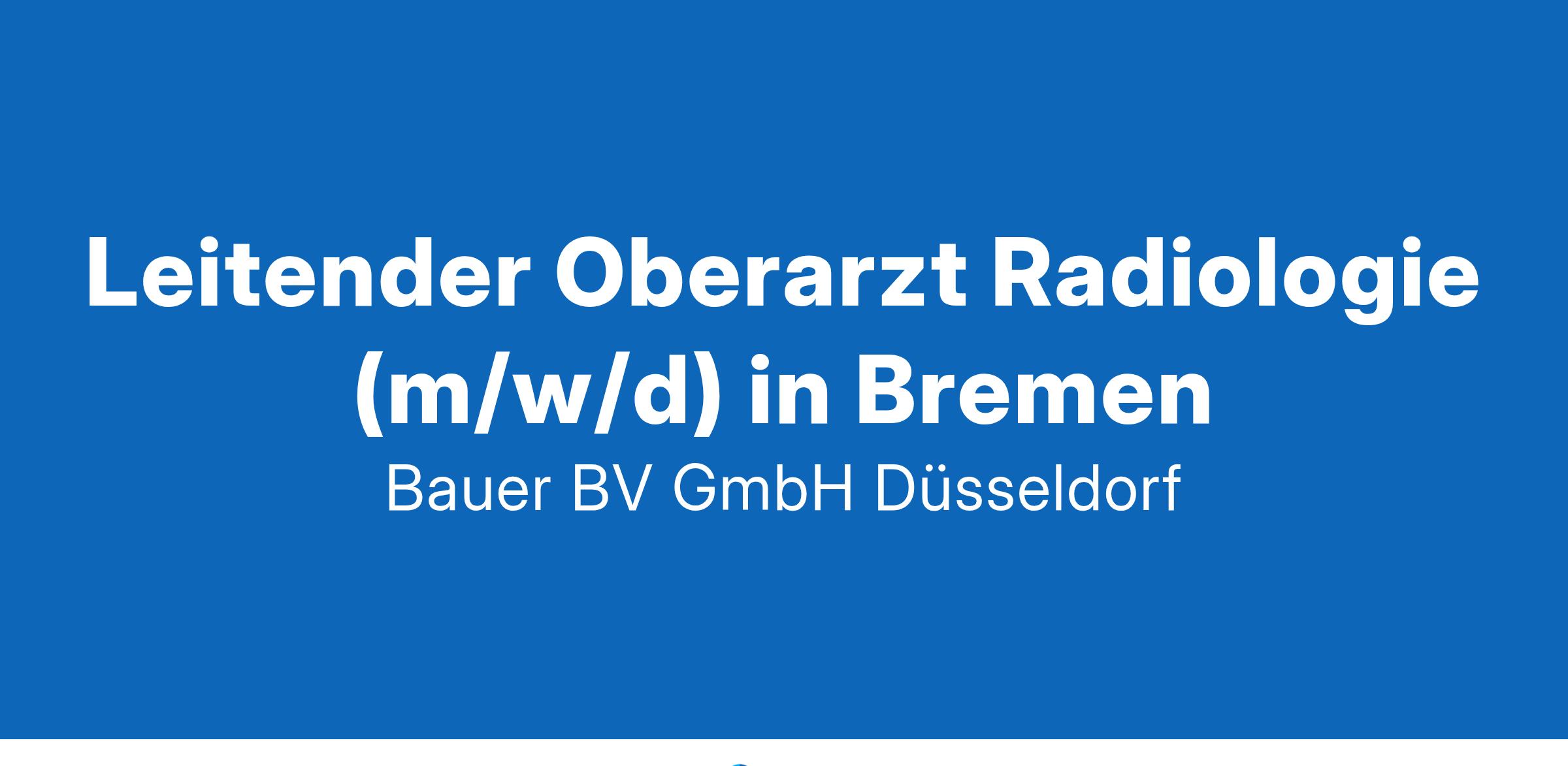 Anstellungsart(en): VollzeitIhr neuer Arbeitsplatz:Krankenhaus der Maximalversorgung und akademisches Lehrkrankenhaus in Bremen. Die Verbundradiologie betreut mehrere Krankenhausstandorte mit einer entsprechend modernen Ausstattung, u.a. zwei CT- und Röntgen-Geräte, eine Angiographie-Anlage sowie ein DEXA-Gerät und Durchleuchtungssystem. Ein MRT wird in Kooperation mit einem lokalen MVZ genutzt.Ihre Vorteile:Attraktiver und verantwortungsvoller Arbeitsplatz als StandortleiterBeste technische und personelle VoraussetzungenFreundliches und engagiertes TeamUnterstützung und Förderung von WeiterbildungenAttraktive, außertarifliche VergütungUnbefristete FestanstellungIhr Profil:Facharzt für Radiologie (m/w/d)Mehrjährige Berufserfahrung in der interventionellen Radiologie (Angio und CT)FührungserfahrungIhr Ansprechpartner:Bauer B+V Personalberatung
