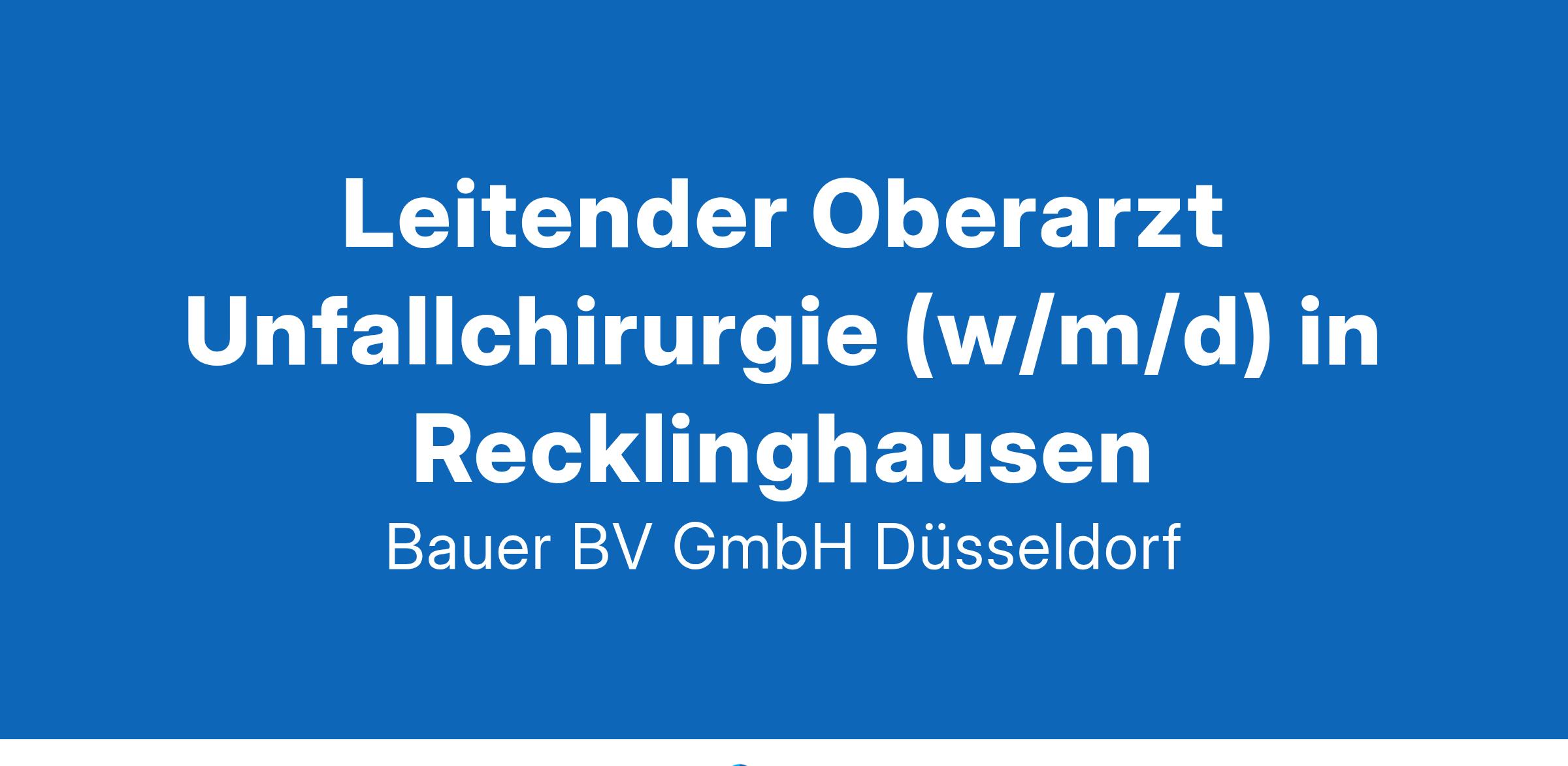 Beschäftigungsbeginn: Jetzt bewerbenIhr neuer Arbeitsplatz:Akademisches Lehrkrankenhaus mit rund 650 Betten in der Region Recklinghausen. Die Sektion Unfallchirurgie versorgt rund 14.000 Patienten pro Jahr. Das Operationsspektrum umfasst alle modernen Verfahren der Unfallchirurgie inkl. minimalinvasiver arthroskopischer Verfahren. Alle Verfahren der akuten und wiederherstellenden Knochenbruchbehandlung mit Titanimplantaten gewebeschonend operativ kommen zur Anwendung.Ihre Vorteile:Ärztliche und fachliche Leitung der Sektion UnfallchirurgieGroße Gestaltungsmöglichkeiten bei der Weiterentwicklung der SektionUmfangreiche interne und externe Fort- und WeiterbildungsmöglichkeitenSystematische Förderung von LeitungskräftenAttraktive Vergütung inkl. betrieblicher AltersversorgungUnbefristete AnstellungIhr Profil:Facharzt für Orthopädie und Unfallchirurgie (m/w/d)Zusatzbezeichnung Spezielle UnfallchirurgieGroße unfallchirurgische ExpertiseBereitschaft zur interdisziplinären ZusammenarbeitBetriebswirtschaftliche KenntnisseIhr Ansprechpartner:Bauer B+V Personalberatung