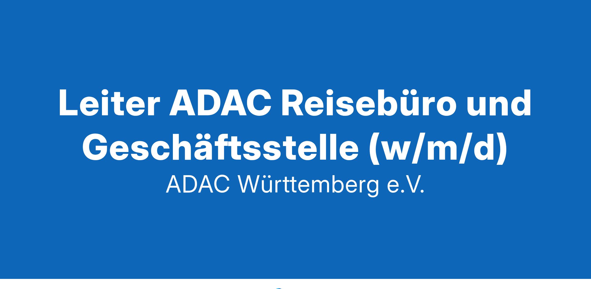 Leiter ADAC Reisebüro und Geschäftsstelle (w/m/d)Der Regionalclub ADAC Württemberg e.V. wurde 1904 gegründet. Mittlerweile arbeiten 230 Mitarbeitende in unseren 14 Geschäftsstellen in Württemberg. Hier kümmern wir uns um die Themen Mobilität, Reise & Urlaub, Versicherungen und natürlich die ADAC Mitgliedschaft.