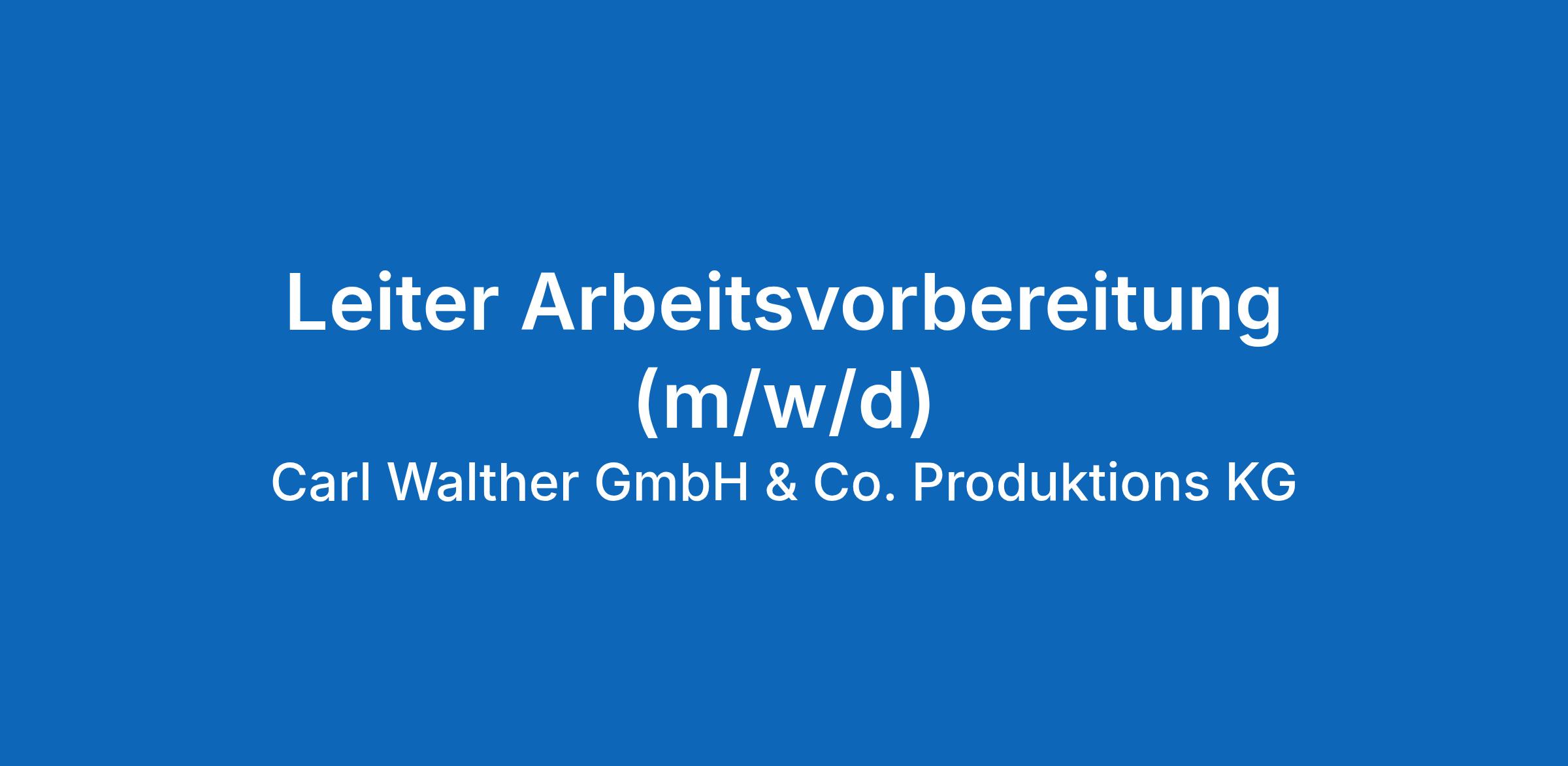 Zur Verstärkung unseres Teams im anspruchsvollen Produktionsumfeld eines führenden Handwaffenherstellers suchen wir einen verantwortungsbewussten und durchsetzungsstarken Leiter Arbeitsvorbereitung (m/w/d). In einem sicherheits- und qualitätskritischen, produzierenden Umfeld übernehmen Sie die fachliche und disziplinarische Führung eines engagierten Teams mit der zentralen Rolle in der Prozess- und Produktionssteuerung und treibst gleichzeitig die Digitalisierung und kontinuierliche Optimierung dieser Abläufe aktiv voran.