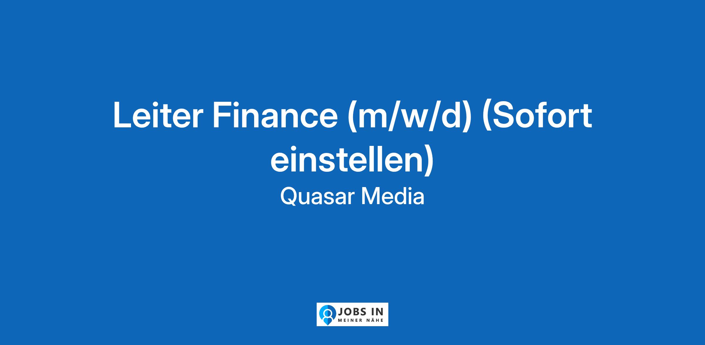 Bewirb dich jetzt und bernimm Verantwortung fr die Position Leitung Finance