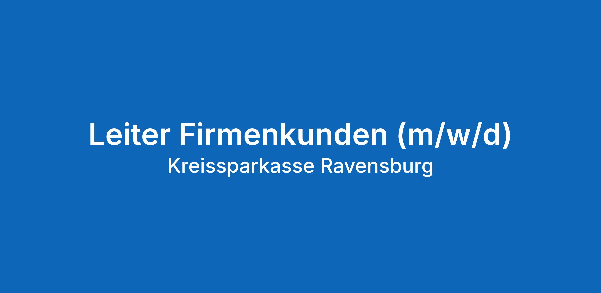 Die Kreissparkasse Ravensburg strebt in Bereichen, in denen Frauen unterrepräsentiert sind, die Erhöhung des Frauenanteils an und fordert daher qualifizierte Frauen ausdrücklich zur Bewerbung auf. Schwerbehinderte Personen werden bei entsprechender Eignung bevorzugt eingestellt. Interne Bewerbende können bevorzugt berücksichtigt werden. Die Teilung der Stelle ist möglich.