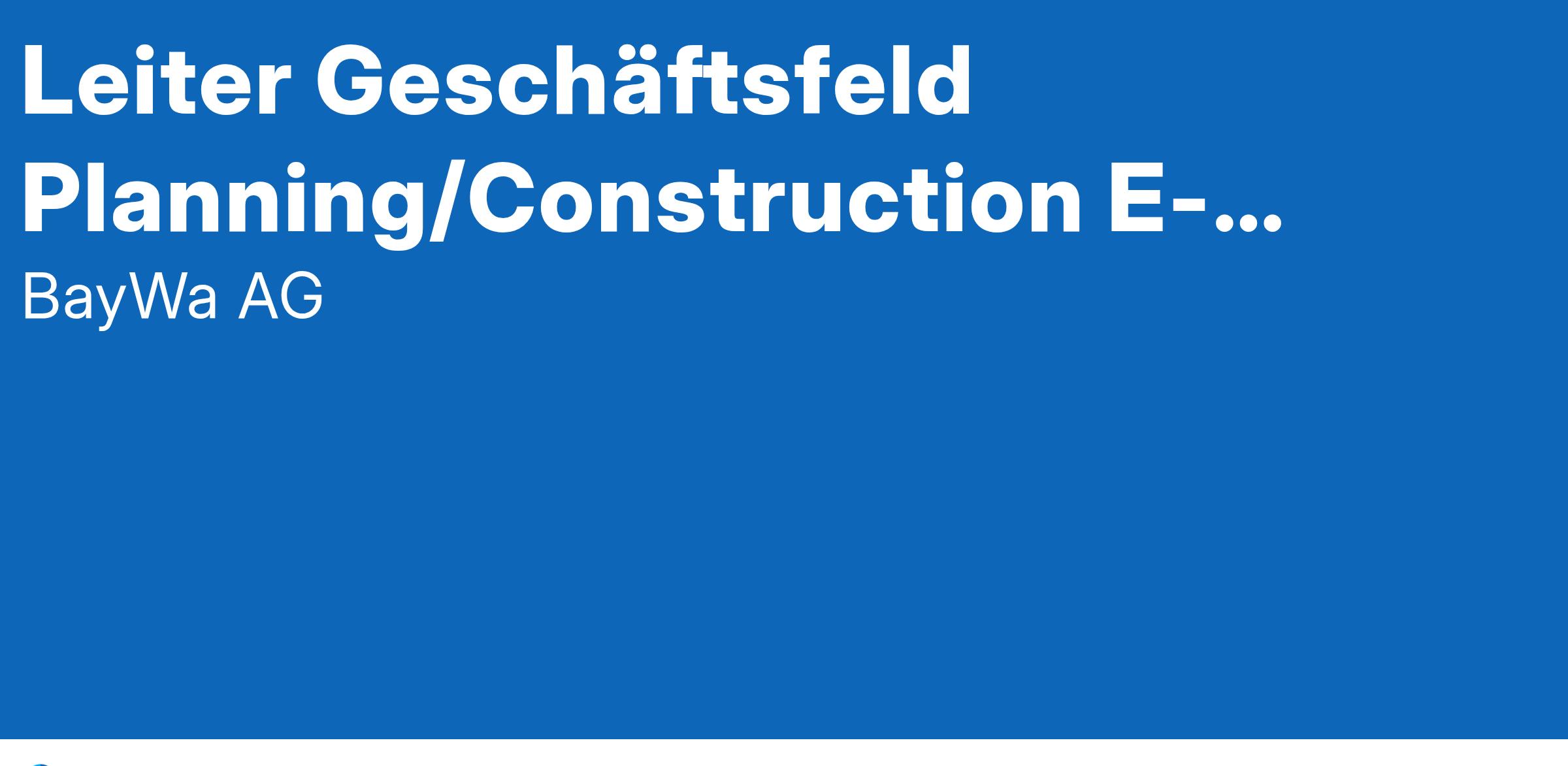 Noch 24 Std. zum Bewerben!! Leiter Geschäftsfeld Planning/Construction E-Mobility (m/w/d)