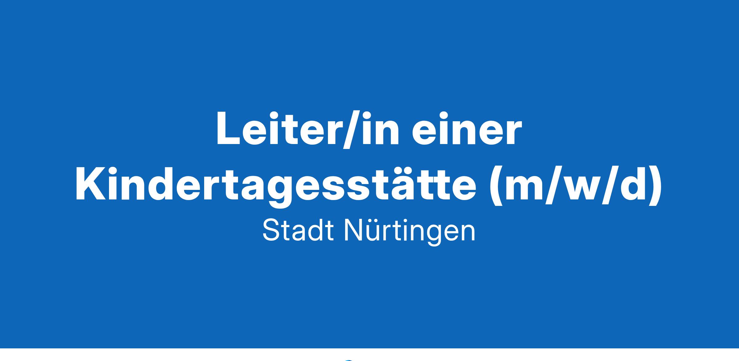 Die Stadt Nürtingen stellt zum nächstmöglichen Zeitpunkt eine KITA-LEITUNG (m/w/d) für den Kindergarten Talstraße in Raidwangen (1-Gruppe 3-6 Jahre und 2-Gruppen 1-3 Jahre) in Vollzeit (100%) ein, da die bisherige Leiterin in den Ruhestand geht. IHRE AUFGABEN Fachliche, organisatorische und wirtschaftliche Leitung der Kindertageseinrichtung Teamentwicklung und Begleitung der pädagogischen Fachkräfte mit einer wertschätzenden Führung Umsetzung und Fortschreibung der pädagogischen Konzeptionen sowohl für Kindergarten, als auch des Krippenbereichs Qualitätsmanagements Vertrauensvolle Erziehungspartnerschaft mit Eltern Öffentlichkeitsarbeit IHRE QUALIFIKATION Staatliche anerkannte Erzieher/in (m/w/d) mit Zusatzausbildung z.B. Fachwirt/in für Organisation und Führung mit dem Schwerpunkt Sozialwesen oder einer vergleichbaren Zusatzqualifikation oder ein abgeschlossenes Studium als Bachelor of Art (B.A) frühkindliche Bildung und