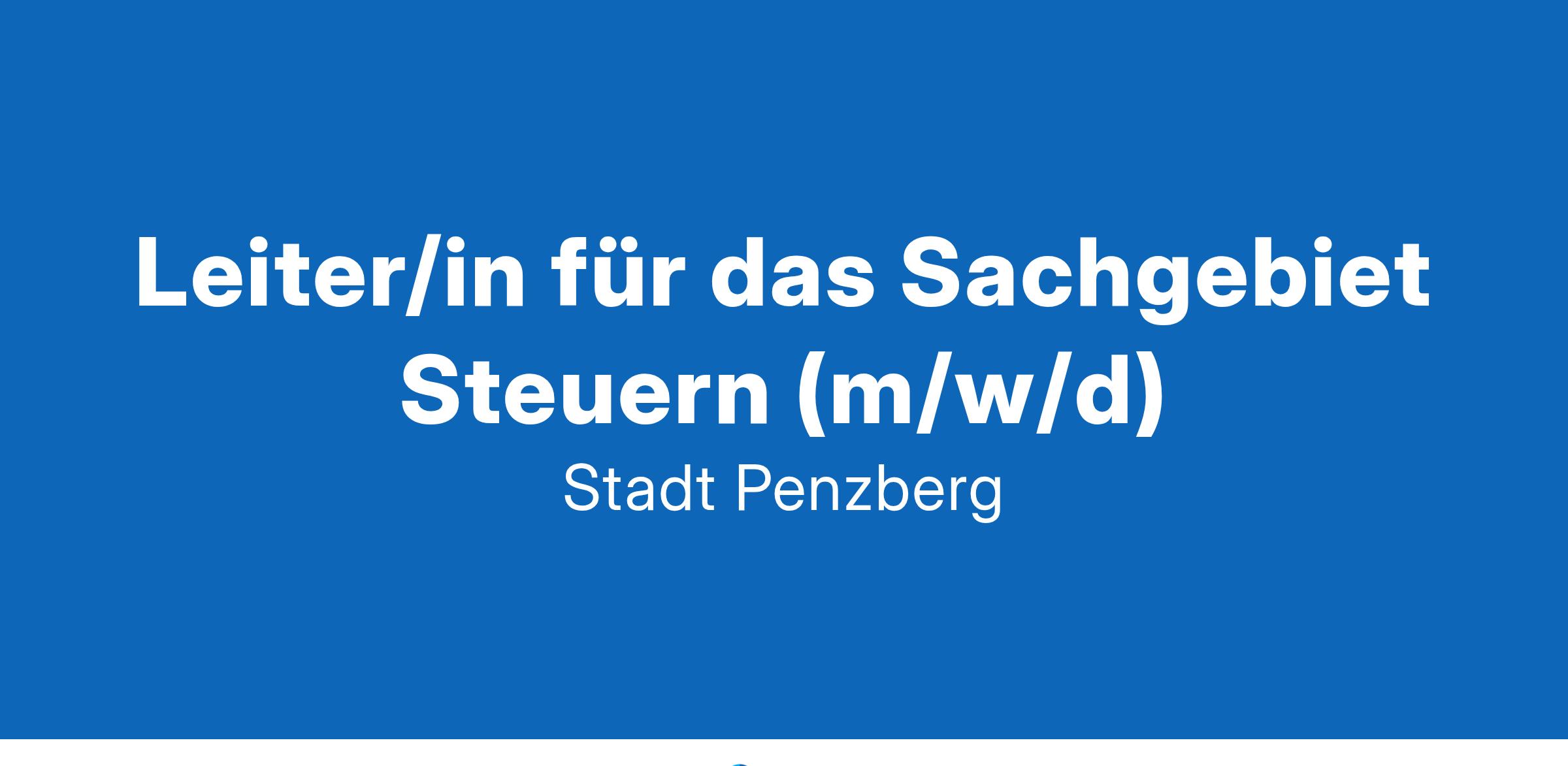 sucht zum nächstmöglichen Zeitpunkt eine/n Leiter/in für das Sachgebiet Steuern (m/w/d) unbefristet, in Vollzeit Eine detaillierte Aufgabenbeschreibung und weitere Informationen zu diesem Stellenangebot erhalten Sie unter www.penzberg.de.