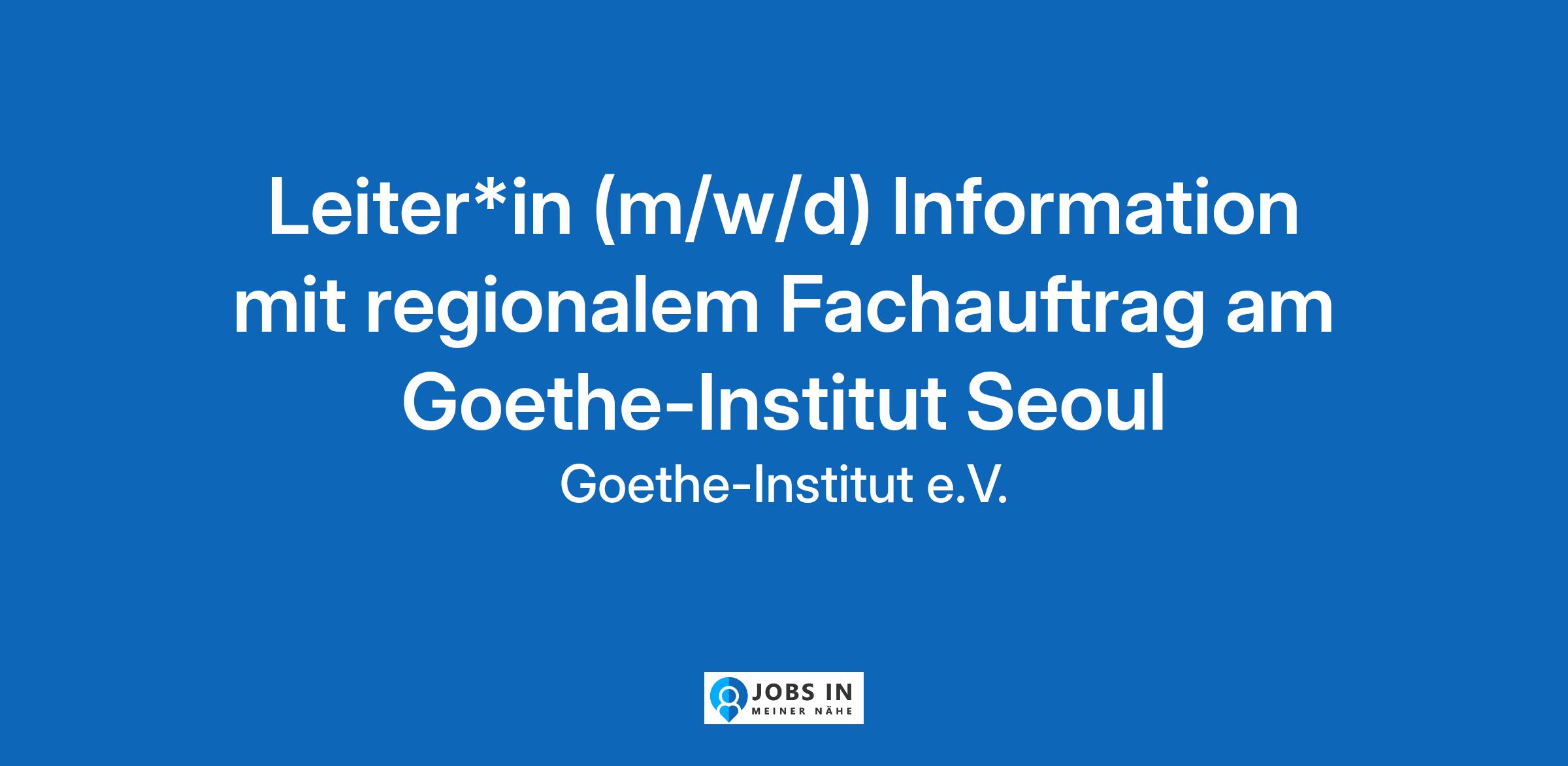 - Sie leiten das Team Information am Regionalinstitut und bernehmen die strategische Steuerung der Informationsarbeit am Goethe-Institut Seoul einschlielich der Entwicklung von Veranstaltungen, des Lnderportals Sdkorea und von Social Media