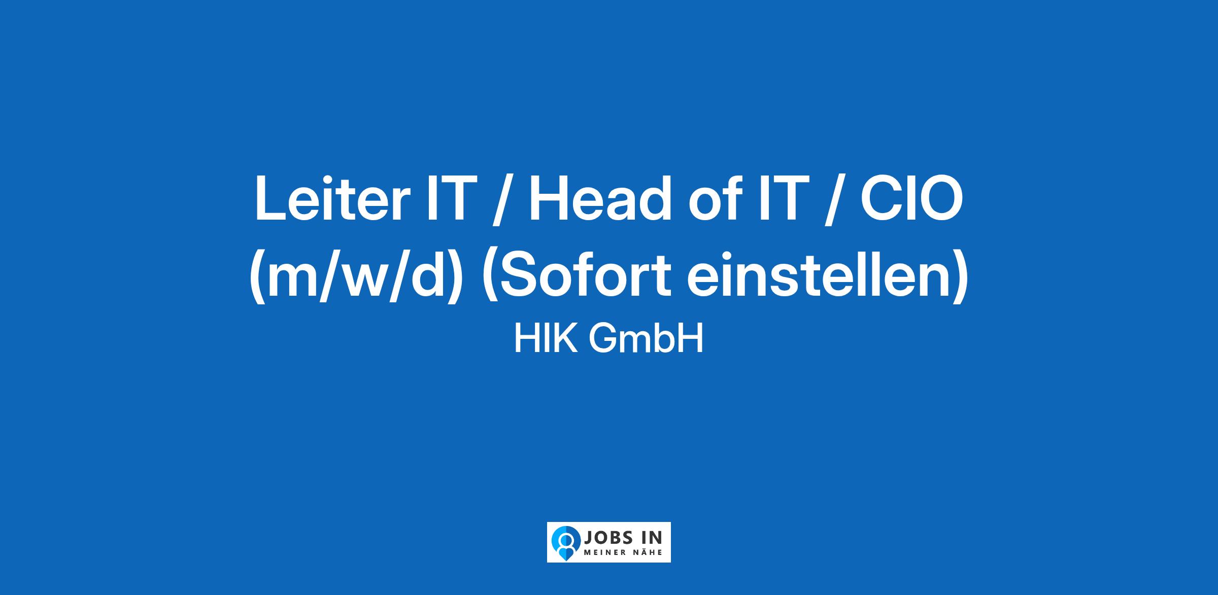 Leiter IT / Head of IT / CIO (m/w/d) (Sofort einstellen)