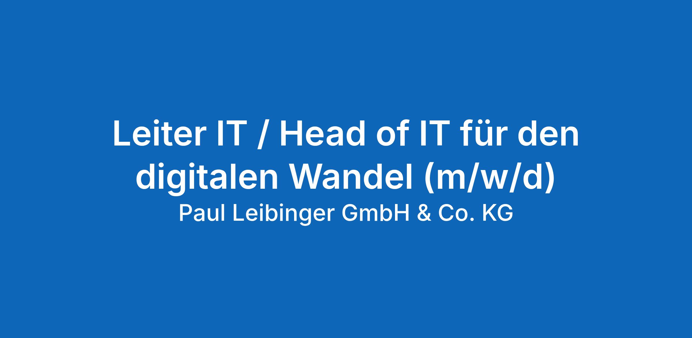 Leiter IT / Head of IT für den digitalen Wandel (m/w/d)