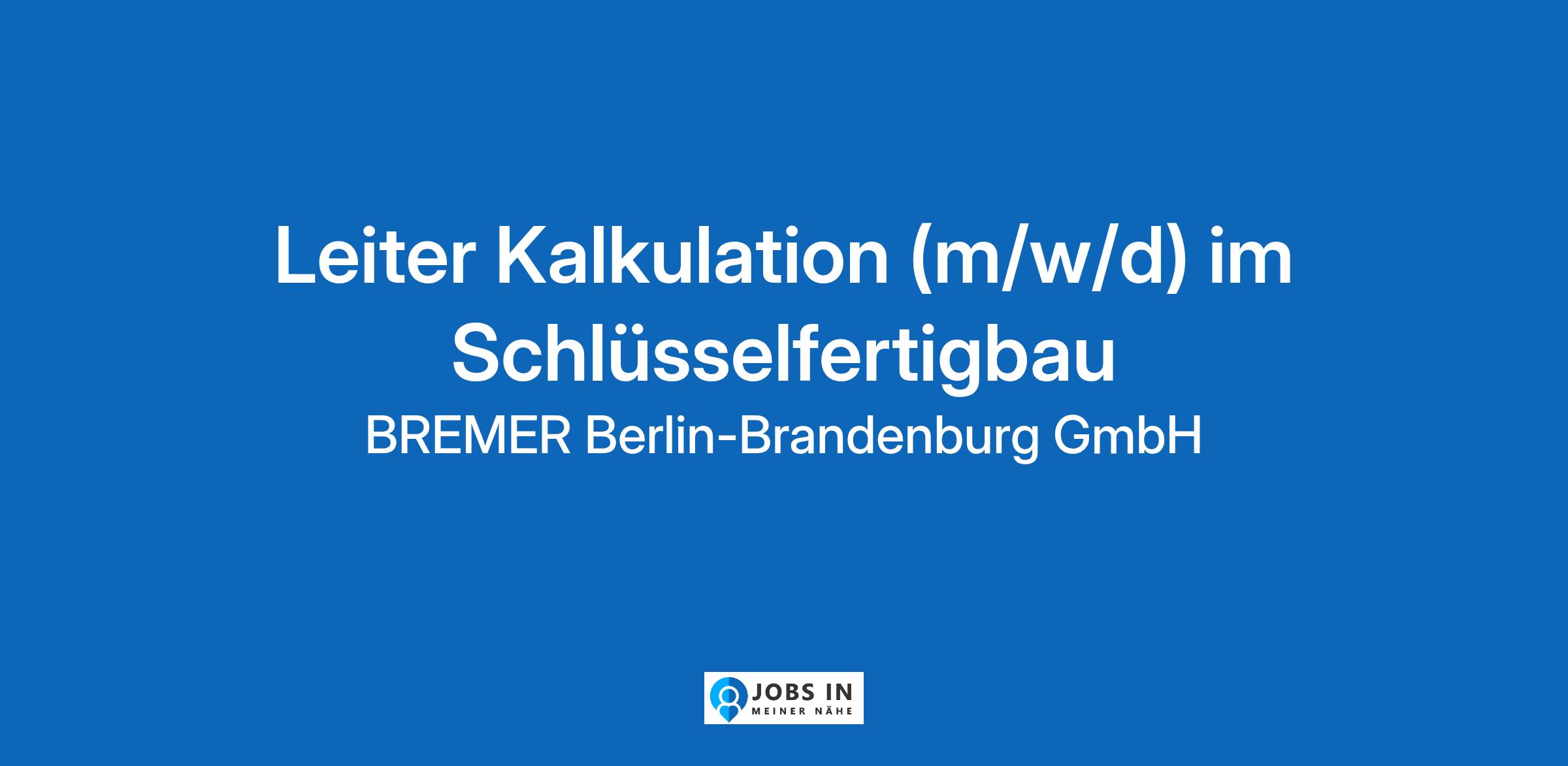 Sie übernehmen als Leiter Kalkulation (m/w/d) in der BREMER Berlin-Brandenburg GmbH eine essenzielle Funktion für die Angebotsbearbeitung unserer Projekte. Ihre fachliche Expertise in der Kalkulation sowie Ihre herausragende Führungskompetenz sind maßgeblich für unseren Erfolg.