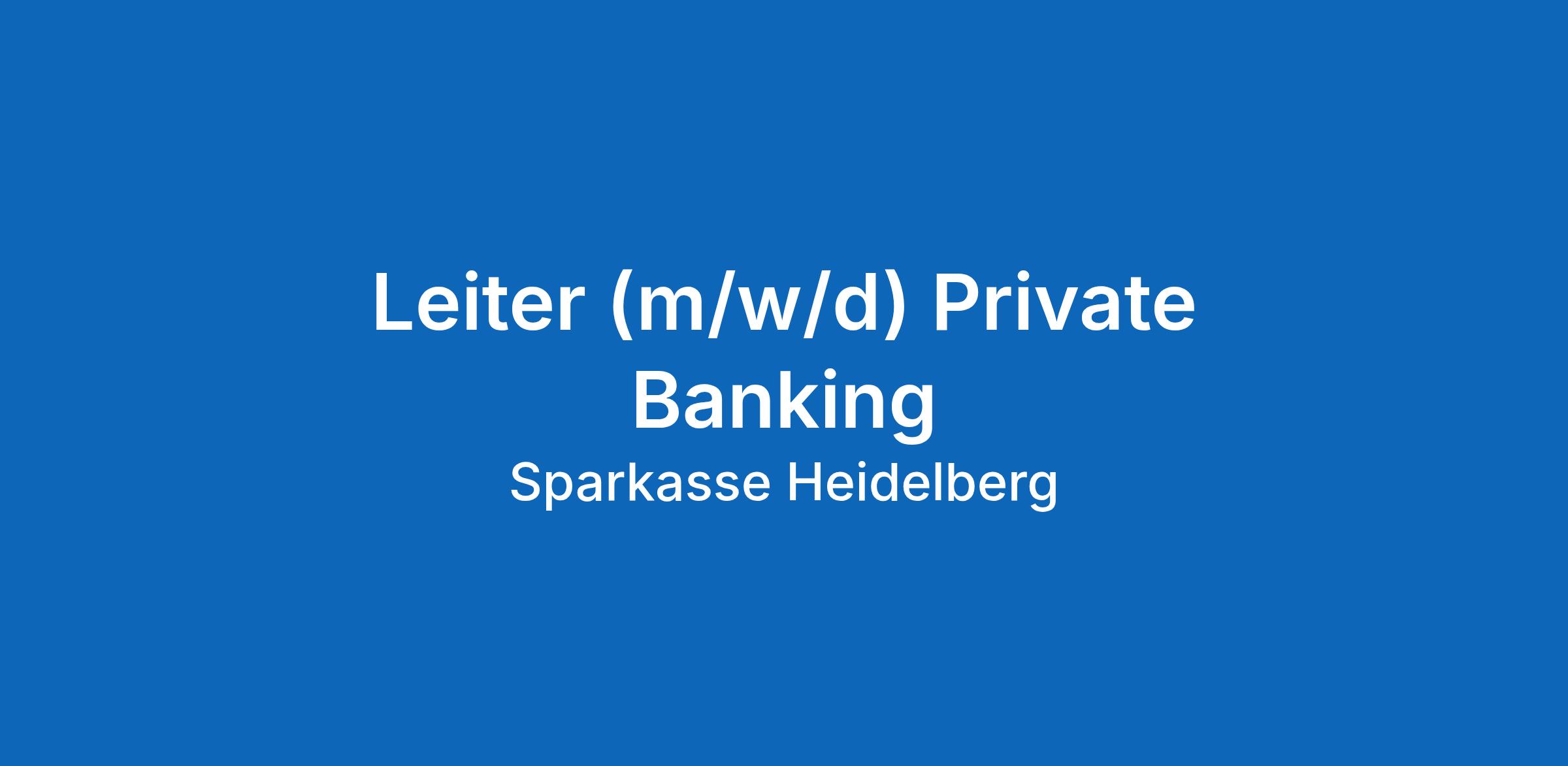 Leiter Private Banking (m/w/d)