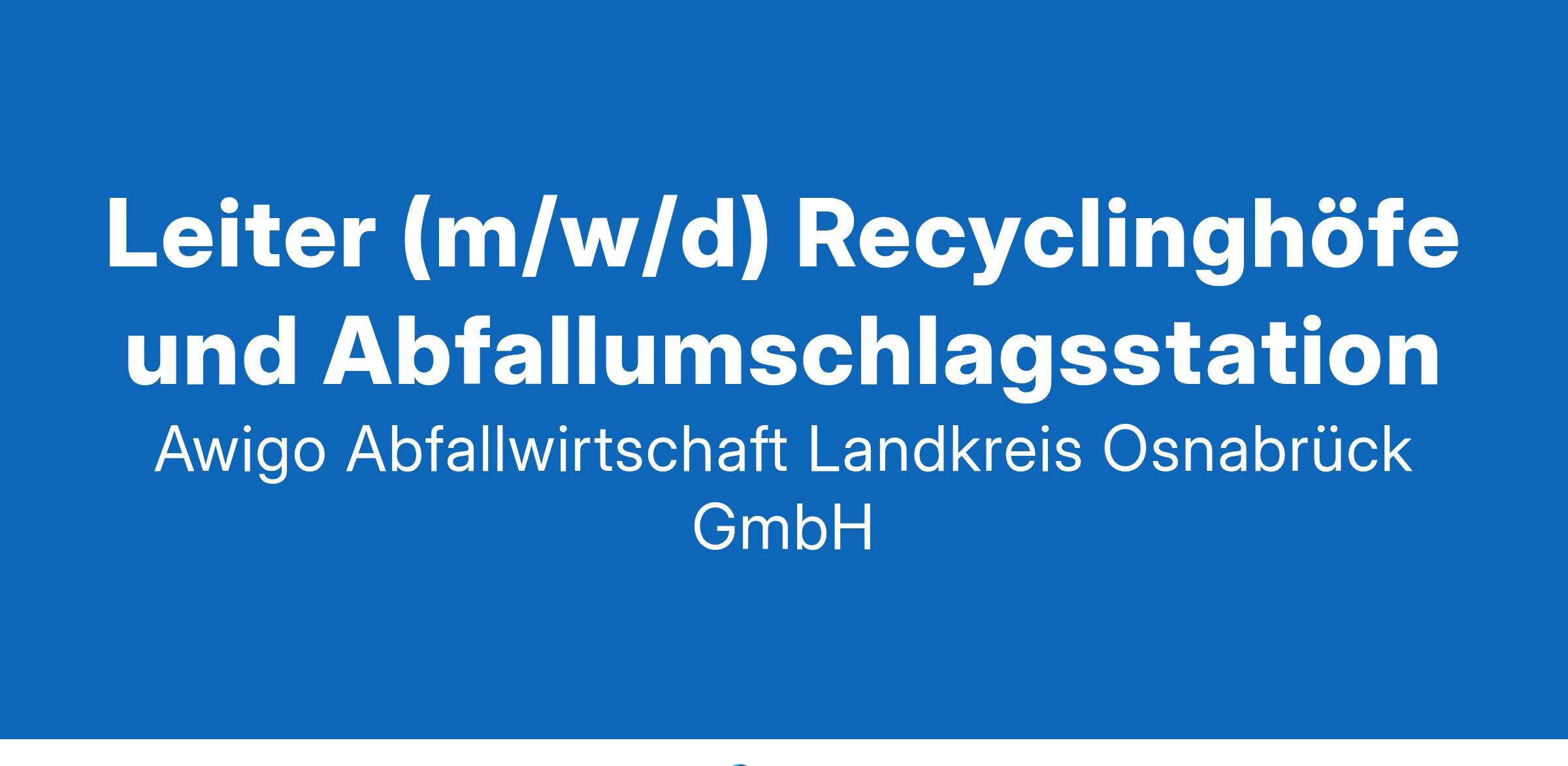 jetzt bewerben www.awigo.de Seit der Gründung im Jahr 2001 hat sich die AWIGO vom Partner in Sachen Abfallwirtschaft zu einem Umweltdienstleister für das Osnabrücker Land entwickelt. Konkret bedeutet das, dass wir Spezialisten sind, rund um die Themen Wertstoffe, Recycling, Verwertung und Nachhaltigkeit. Unsere Aufgabengebiete wachsen aber immer weiter und unser Anspruch auch. Und dafür brauchen wir stets neue Mitstreiterinnen und Mitstreiter, die unser inzwischen 400-köpfiges Team ergänzen und gemeinsam mit uns wichtige Themen rund um unsere Umwelt anpacken und Lösungen schaffen. Leitung (m/w/d) Recyclinghöfe und Abfallumschlagsstation Landkreis Osnabrück ab sofort Vollzeit unbefristet Du übernimmst die Leitung von Recyclinghöfen und der Abfallumschlagsstation, einschließlich der Personalführung, und trägst somit aktiv dazu bei, eine nachhaltige Abfall- und Wertstoffwirtschaft in der Region Osnabrück sicherzustellen. Deine Aufgaben: Du steuerst die operativen Abläufe auf mehreren Recyclinghöfen und sorgst für einen effizienten und reibungslosen Betrieb Du verantwortest die Abläufe beim Umschlag von Abfällen, um deren fachgerechte Abwicklung sicherzustellen Du führst mehrere Standorte und Teams und stellst mit Unterstützung der Standortkoordinatoren die erfolgreiche Zusammenarbeit sicher Du erstellst und verantwortest die Personaleinsatzplanung sowie die Personalkostenplanung, Kostenstellenplanung und Investitionsplanung Du stellst die Einhaltung aller relevanten Genehmigungen, gesetzlichen Vorgaben und Verordnungen im täglichen Betrieb der Recyclinghöfe sicher Du übernimmst die Verantwortung für die Wartung, Instandhaltung und den Betrieb der technischen Anlagen und Geräte auf den Recyclinghöfen Du erstellst und analysierst komplexe Auswertungen und Statistiken Dein Profil: Fachliche Kompetenzen: Abgeschlossenes Studium im ingenieurwissenschaftlichen oder betriebswirtschaftlichen Bereich oder ein vergleichbarer Abschluss Idealerweise Berufserfahrung in der Abfallwirtschaft Erfahrung in einer Führungsposition, vorzugsweise in der Abfallwirtschaft Sicherer Umgang mit den gängigen MS Office-Anwendungen Führerschein der Klasse B Persönliche Fähigkeiten: Selbstständige und strukturierte Arbeitsweise mit einer ausgeprägten Ergebnisorientierung Hohe Verantwortungsbereitschaft, Organisationsstärke und Entscheidungsfreude Ausgeprägte Kommunikationsstärke gepaart mit Empathie und Teamfähigkeit Deine Vorteile: Betriebliche Altersvorsorge Gut aufgestellt im Alter - Blicke mit Zuversicht in die Zukunft und profitiere von attraktiven Konditionen. Business Bike Mit dem Fahrrad zur Arbeit? Nutze unser Angebot für umweltbewusstes Pendeln. Hansefit-Partnerschaft Sonderkonditionen können deine sportliche Motivation zusätzlich steigern. Mit unserem Kooperationspartner und dem digitalen Fitnessangebot bleibst du fit. Vermögenswirksame Leistungen Wir sparen für dich mit. Mitarbeiterrabatte Produkte und Dienstleistungen vergünstigt kaufen mit uns leicht gemacht. Dienstwagen inkl. Privatnutzung Nachhaltige Mobilitätslösungen: Nutze unser Angebot für umweltbewusstes Pendeln - E-Geschäftsfahrzeuge. Kindernotfallbetreuung Gestaltungsspielraum für private Herausforderungen - Nutze unsere Kindernotfallbetreuung. Krisensicherer Arbeitsplatz Wir gehören zur kritischen Infrastruktur in Deutschland. ... und viele weitere! Kontakt: Eine Umwelt. Ein Team. AWIGO. Werde ein Teil davon und bewirb dich jetzt. Wir freuen uns auf deine aussagekräftigen Bewerbungsunterlagen! Dein Recruiting Team Stefanie & Sebastian Tel: 05401 3655 300 Bewerben AWIGO Abfallwirtschaft Landkreis Osnabrück GmbH Niedersachsenstr. 19 | 49124 Georgsmarienhütte | Tel: (0 54 01) 36 55 - 300 | www.awigo.de