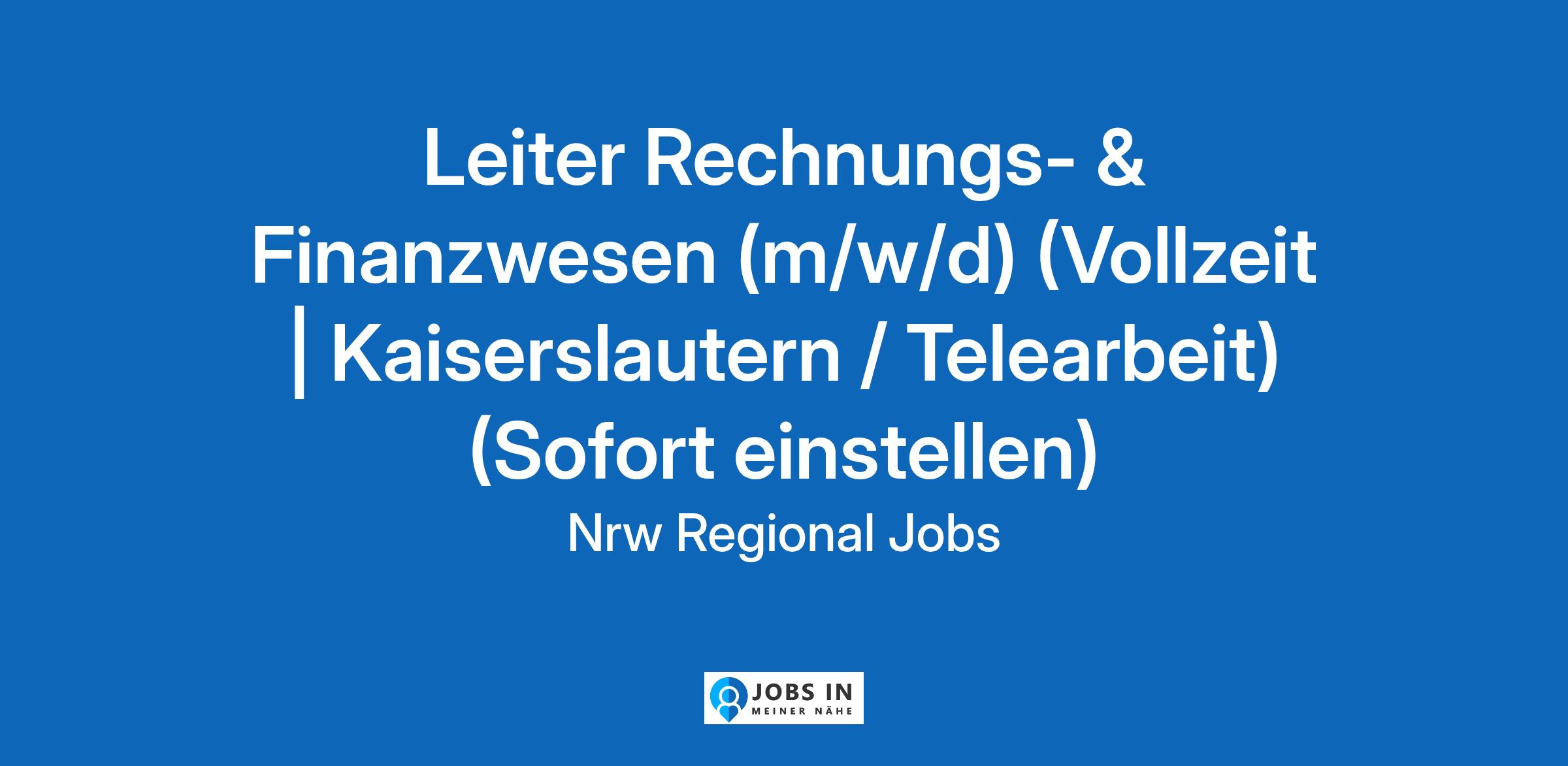 Leiter Rechnungs- & Finanzwesen (m/w/d) (Vollzeit | Kaiserslautern / Telearbeit) (Sofort einstellen)