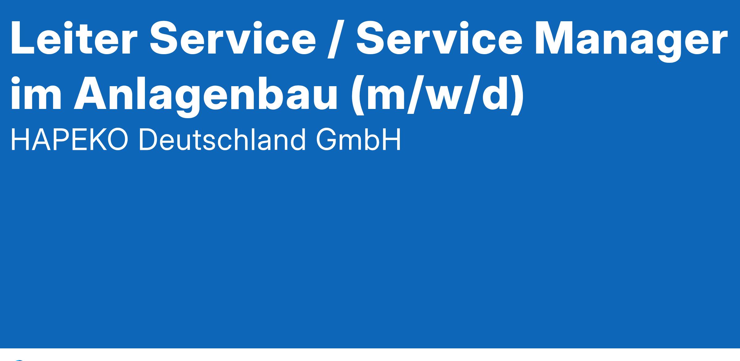 Leiter Service / Service Manager im Anlagenbau (m/w/d)