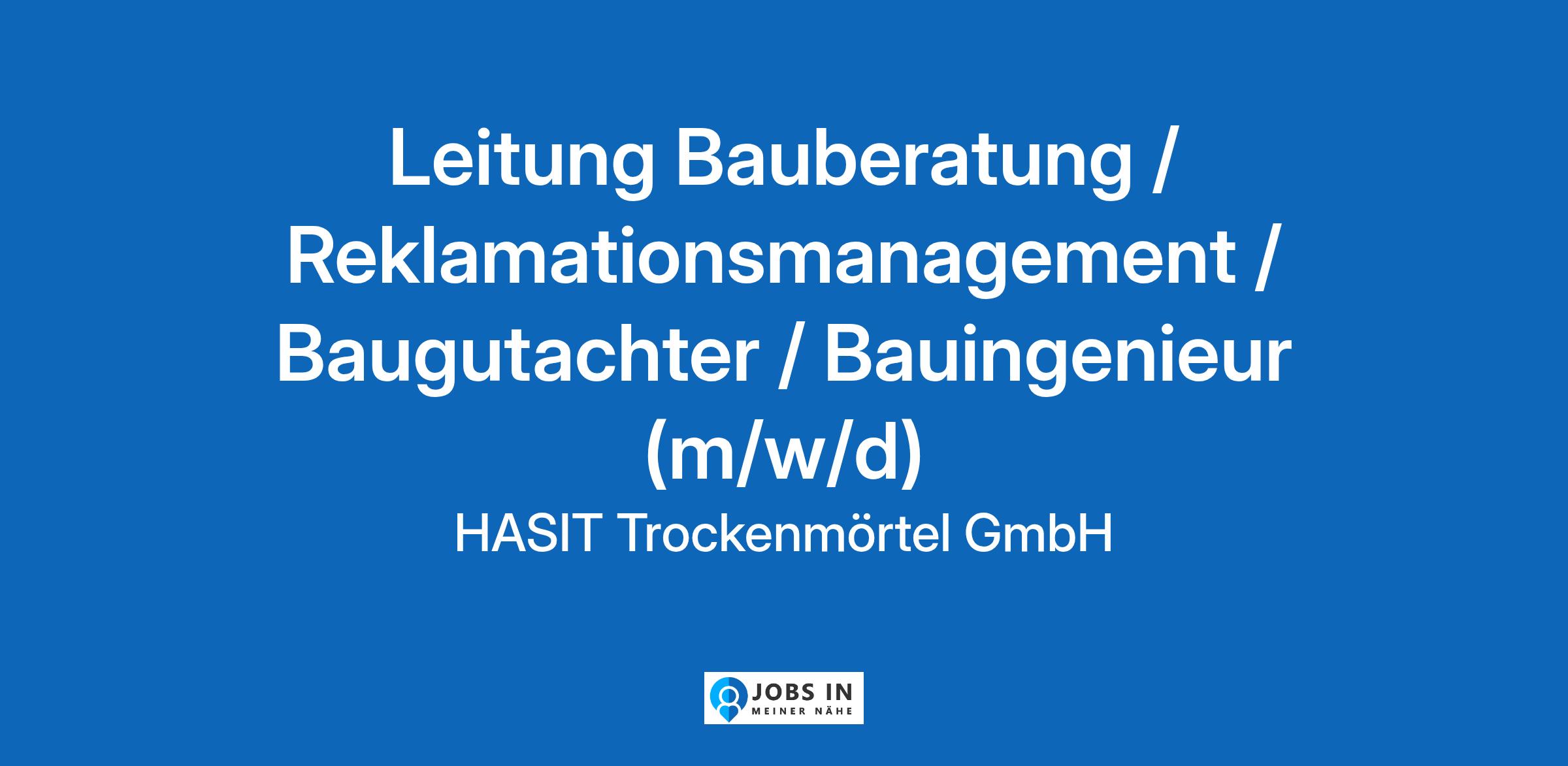 HASIT ist ein überregionaler Hersteller von Baustoffprodukten bzw. -systemen und ist hochqualifizierter Lösungsanbieter. Das Unternehmen mit Sitz im bayerischen Freising wächst seit über 50 Jahren und beschäftigt mehr als 200 Mitarbeiter in der Zentrale und an seinen sechs Werksstandorten. Als T... Kundenorientiert;Führung;Bauwesen;Hoch- und Tiefbau;Baurecht;Teamleitung;Kommunikation;Problemlösung;Technische Beratung;Technische Beratung;Schulung;Vertragsrecht;Bauberatung Original Stellenanzeige auf StepStone.de – Jetzt Jobagent bei StepStone einrichten und Traumjob finden! https://bit.ly/2KOagYD Mehr Informationen zu Arbeitgebern, Gehaltsdaten und Karrieretipps finden Sie auf StepStone.de
