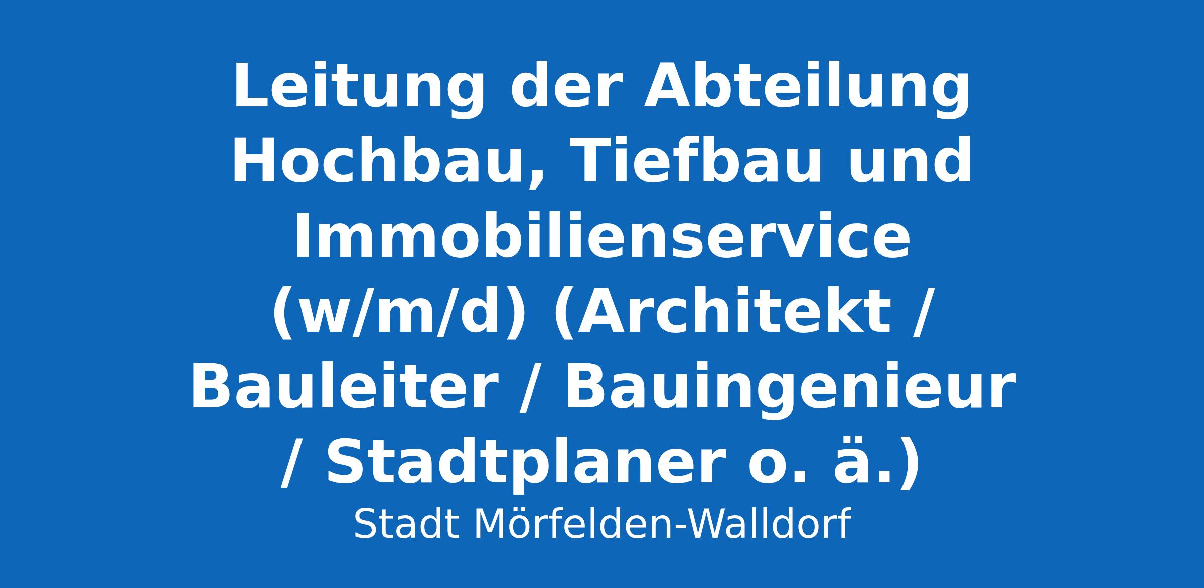 Leitung der Abteilung Hochbau, Tiefbau und Immobilienservice (w/m/d) (Architekt / Bauleiter / Bauingenieur / Stadtplaner o. ä.)