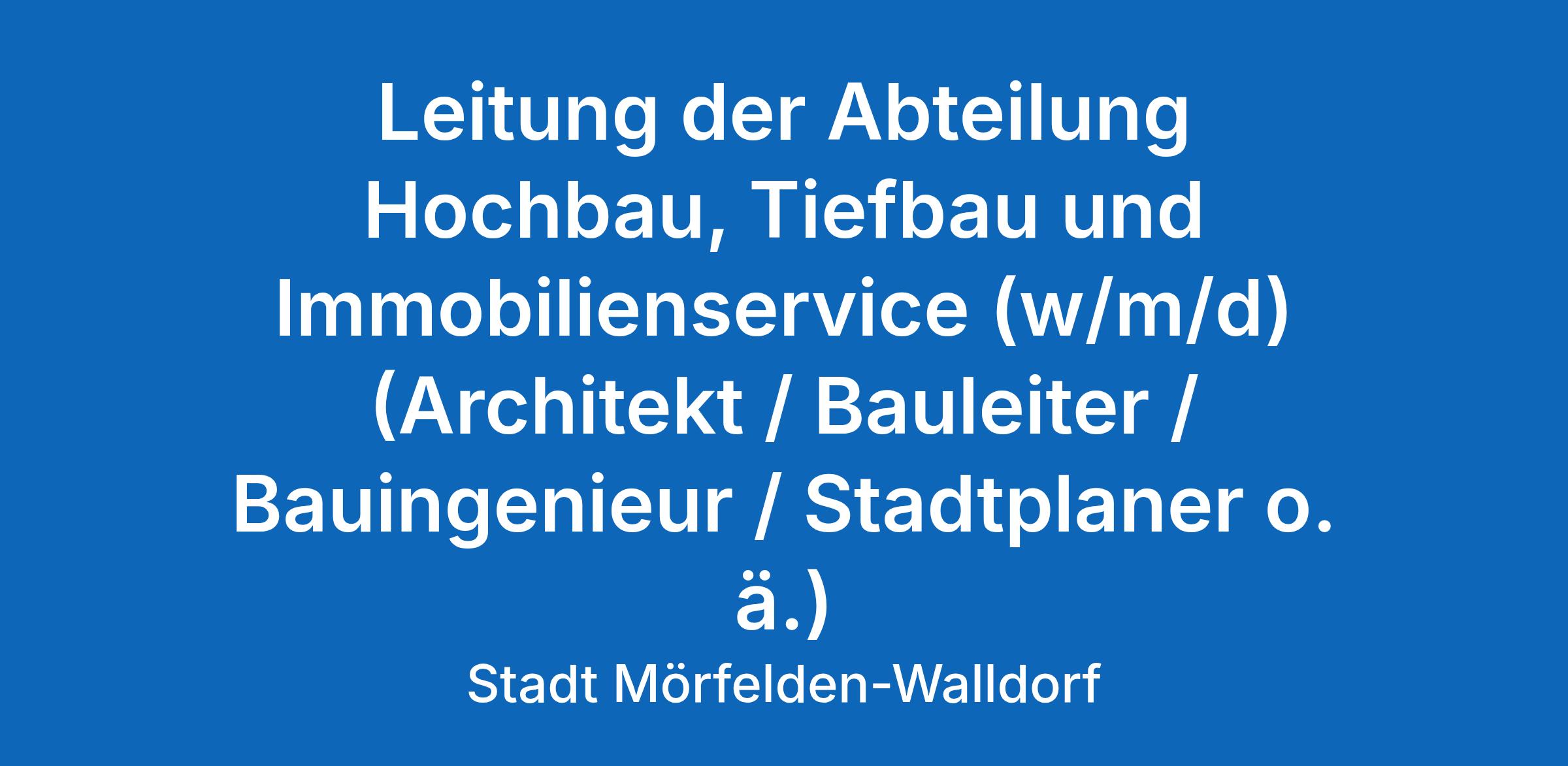 Leitung der Abteilung Hochbau, Tiefbau und Immobilienservice (w/m/d) (Architekt / Bauleiter / Bauingenieur / Stadtplaner o. ä.)