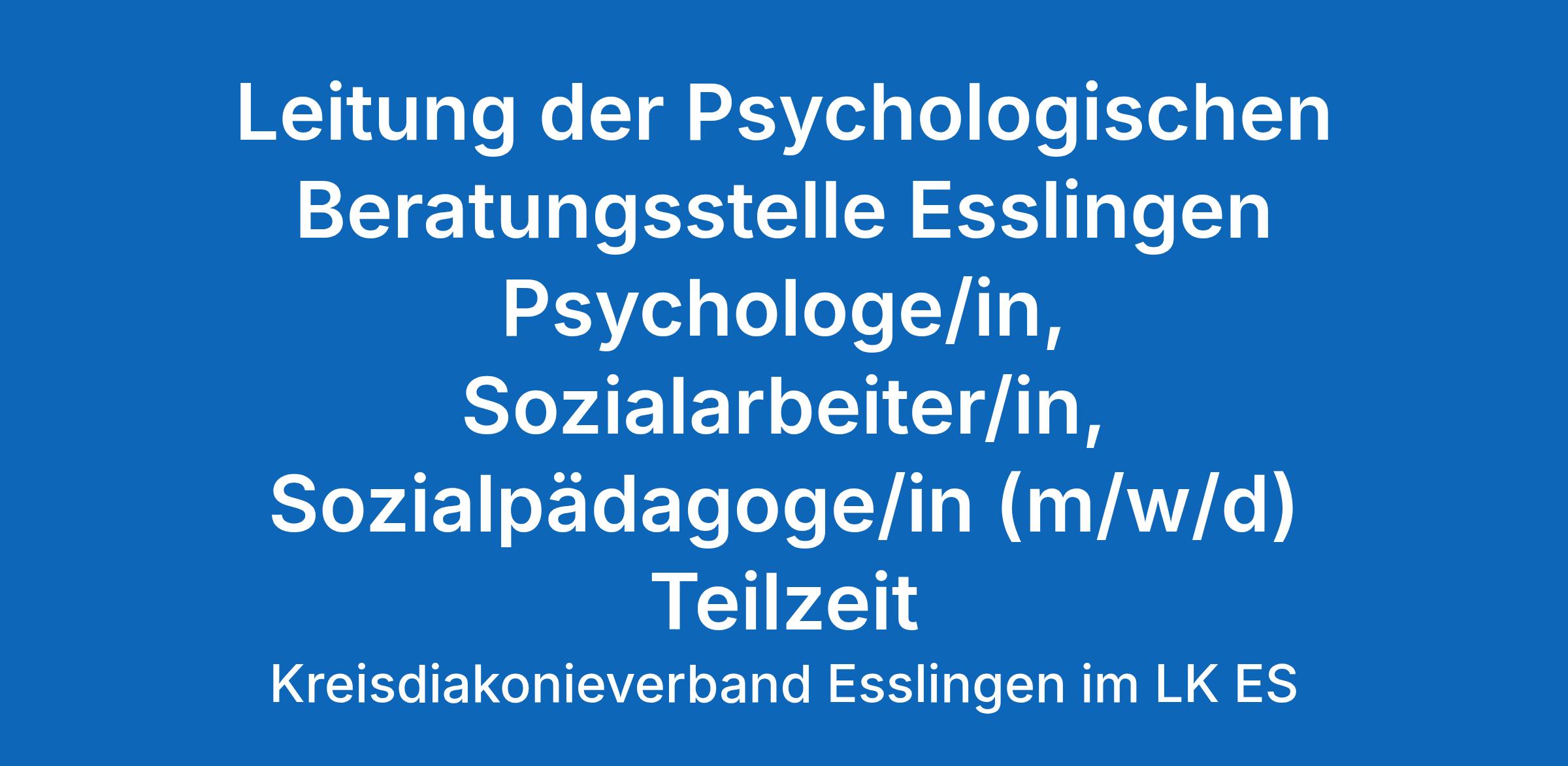 Leitung der Psychologischen Beratungsstelle Esslingen Psychologe/in, Sozialarbeiter/in, Sozialpädagoge/in (m/w/d) Teilzeit