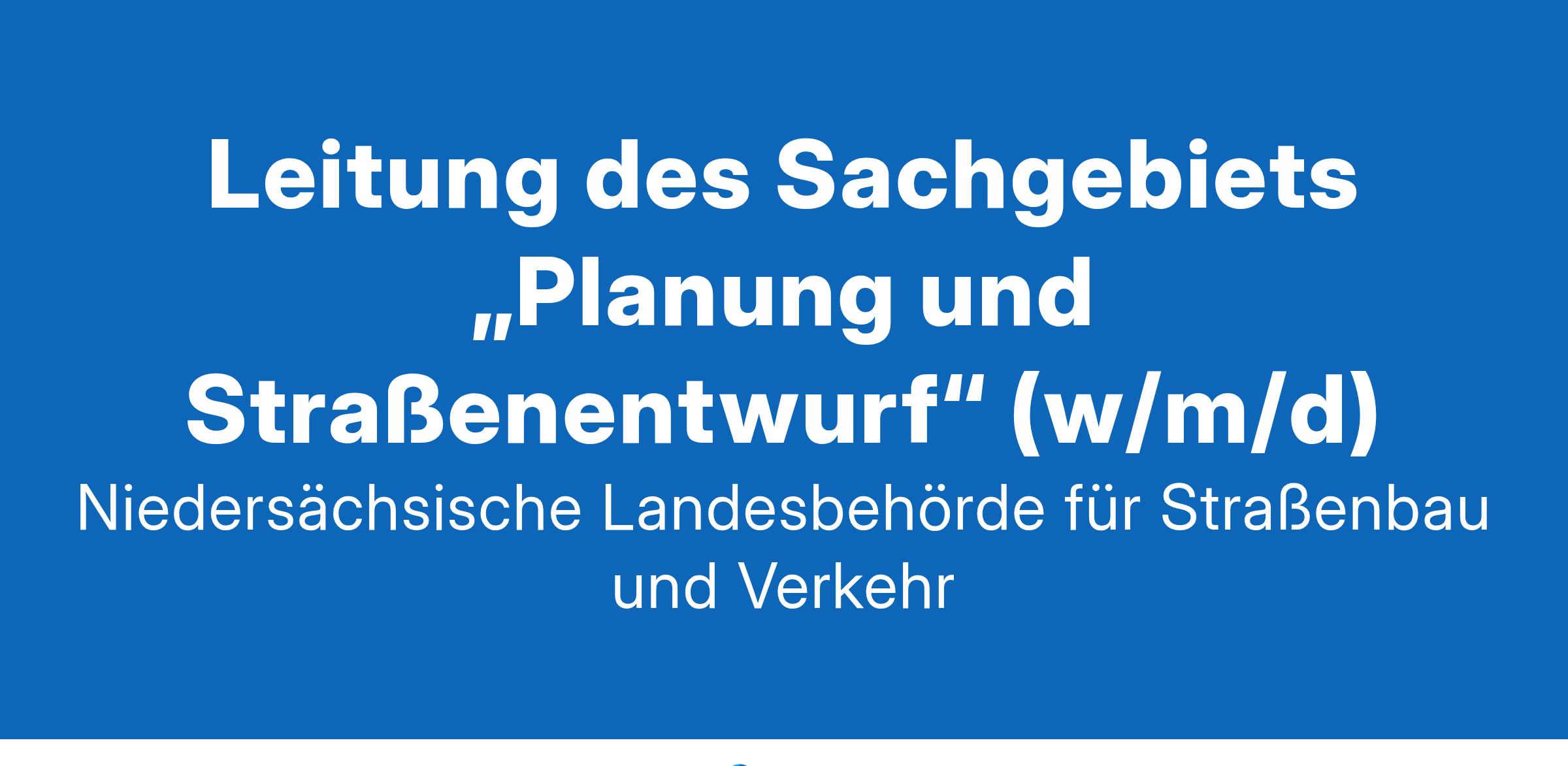 Niedersächsische Landesbehörde für Straßenbau und Verkehr Zentraler Geschäftsbereich Hannover Leitung des Sachgebiets „Planung und Straßenentwurf“ (w/m/d) Hannover In der Niedersächsischen Landesbehörde für Straßenbau und Verkehr ist im zentralen Geschäftsbereich 2 in Hannover