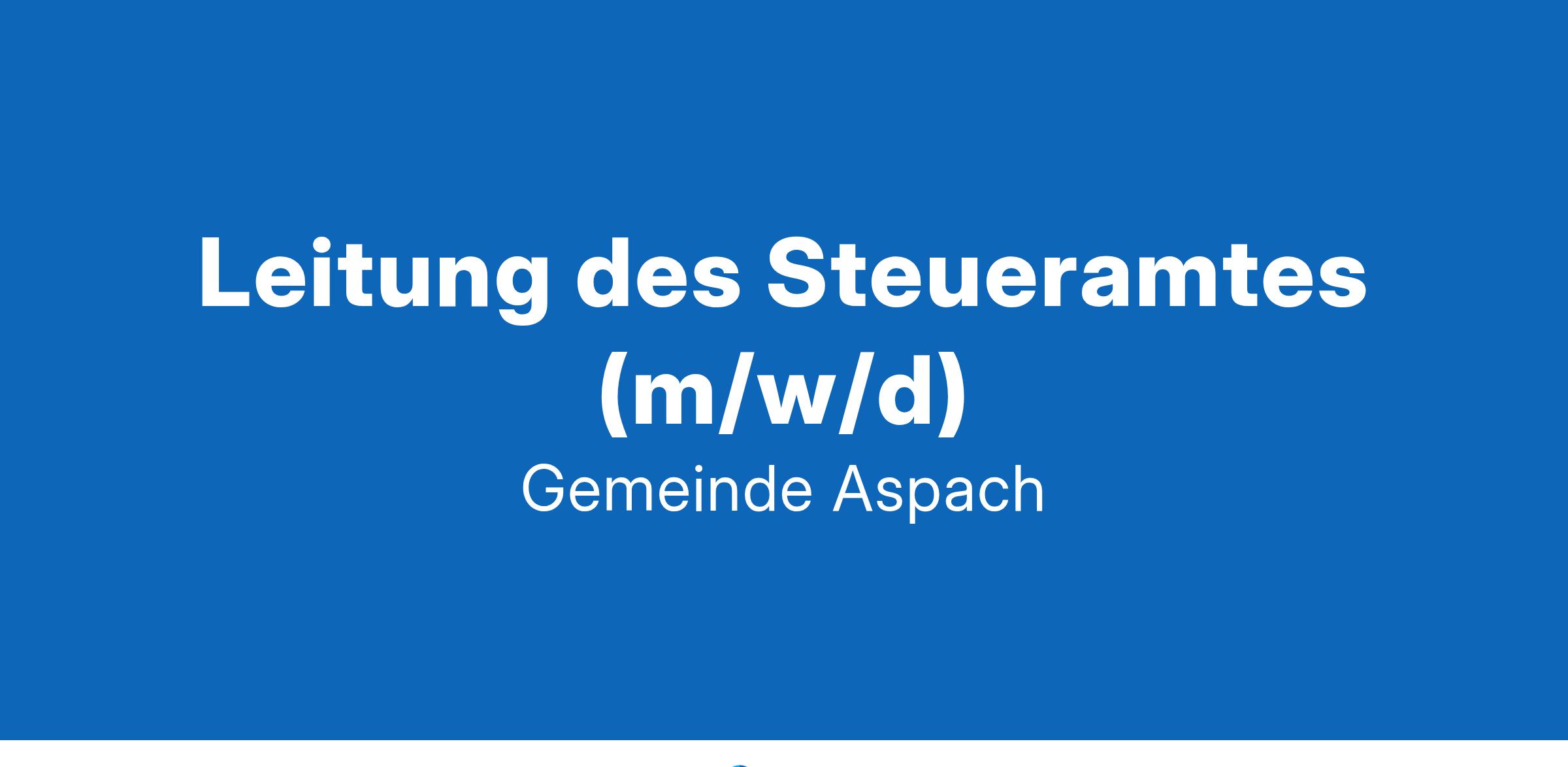 Bewerbungen von Schwerbehinderten und Gleichgestellten berücksichtigen wir entsprechend den Zielsetzungen des Schwerbehindertenrechts. Haben wir Ihr Interesse geweckt? Ihre aussagekräftigen Bewerbungsunterlagen schicken Sie bitte bis zum 16. Februar 2025 im PDF-Format per E-Mail an bewerbung[AT]aspach.de mit dem Betreff „Bewerbung Leitung des Steueramtes (m/w/d)“ oder per Post an die Gemeinde Aspach, Backnanger Straße 9, 71546 Aspach. Bitte senden Sie uns nur Kopien (ohne Bewerbungsmappen, Plastikhüllen o.ä.), da wir die Bewerbungsunterlagen nach Abschluss des Auswahlverfahrens vernichten. Wir freuen uns auf Ihre Bewerbung!