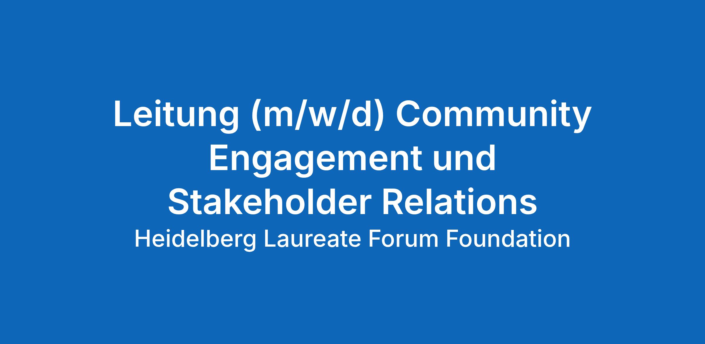 Die Heidelberg Laureate Foundation sucht eine Leitung für die Bereiche Community Engagement und Stakeholder Relations, um unsere Aktivitäten an der Schnittstelle zwischen Wissenschaft und Gesellschaft weiter auszubauen. Diese Position gestaltet einen zentralen strategischen Bereich der Stiftung und trägt maßgeblich zu unserer Mission bei, den Dialog zwischen Generationen, Disziplinen und Kulturen zu fördern.
