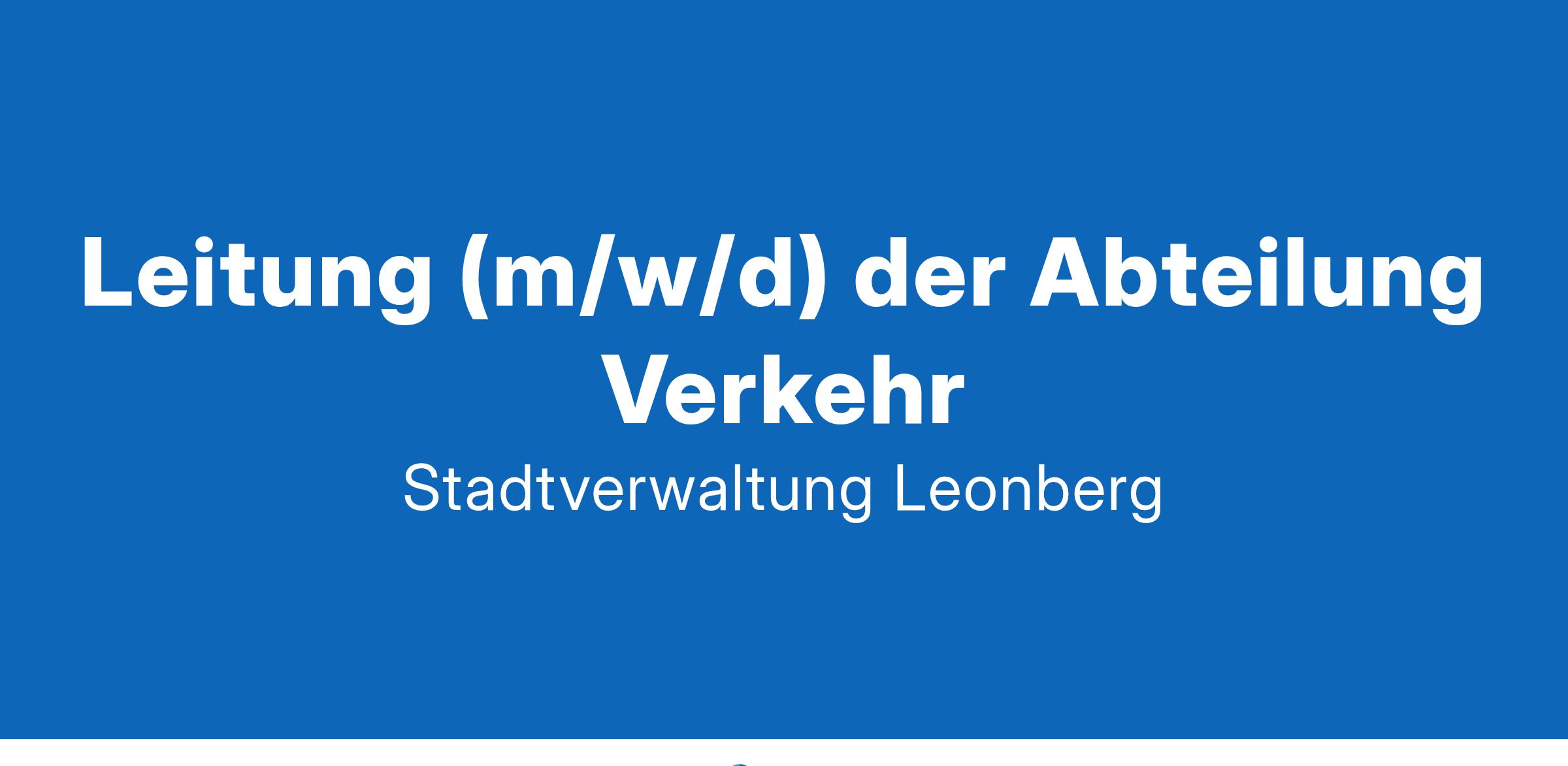 Die Stadt der Zukunft entwickeln alsLeitung (m/w/d) der Abteilung Verkehrzum nächstmöglichen ZeitpunktWas können Sie bewegen?Leitung der Abteilung Verkehr mit den Bereichen Straßenverkehrsbehörde, Bußgeldstelle und gemeindlicher Vollzugsdienst mit 20 Mitarbeitenden