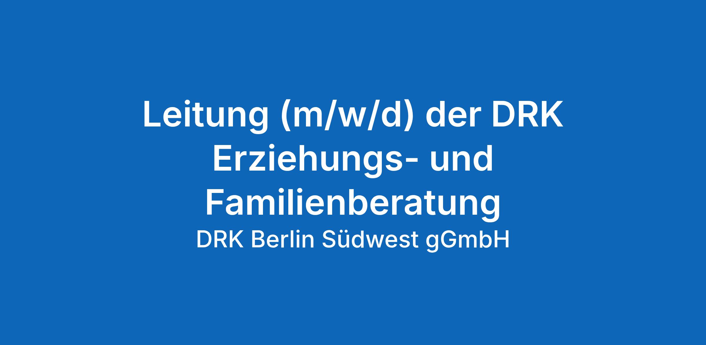 Für unsere DRK Erziehungs- und Familienberatung in Steglitz suchen wir ab sofort eine engagierte Leitung, die einen wesentlichen Beitrag zur Unterstützung von Familien und zur Förderung der kindlichen Entwicklung und Erziehung leisten möchte.