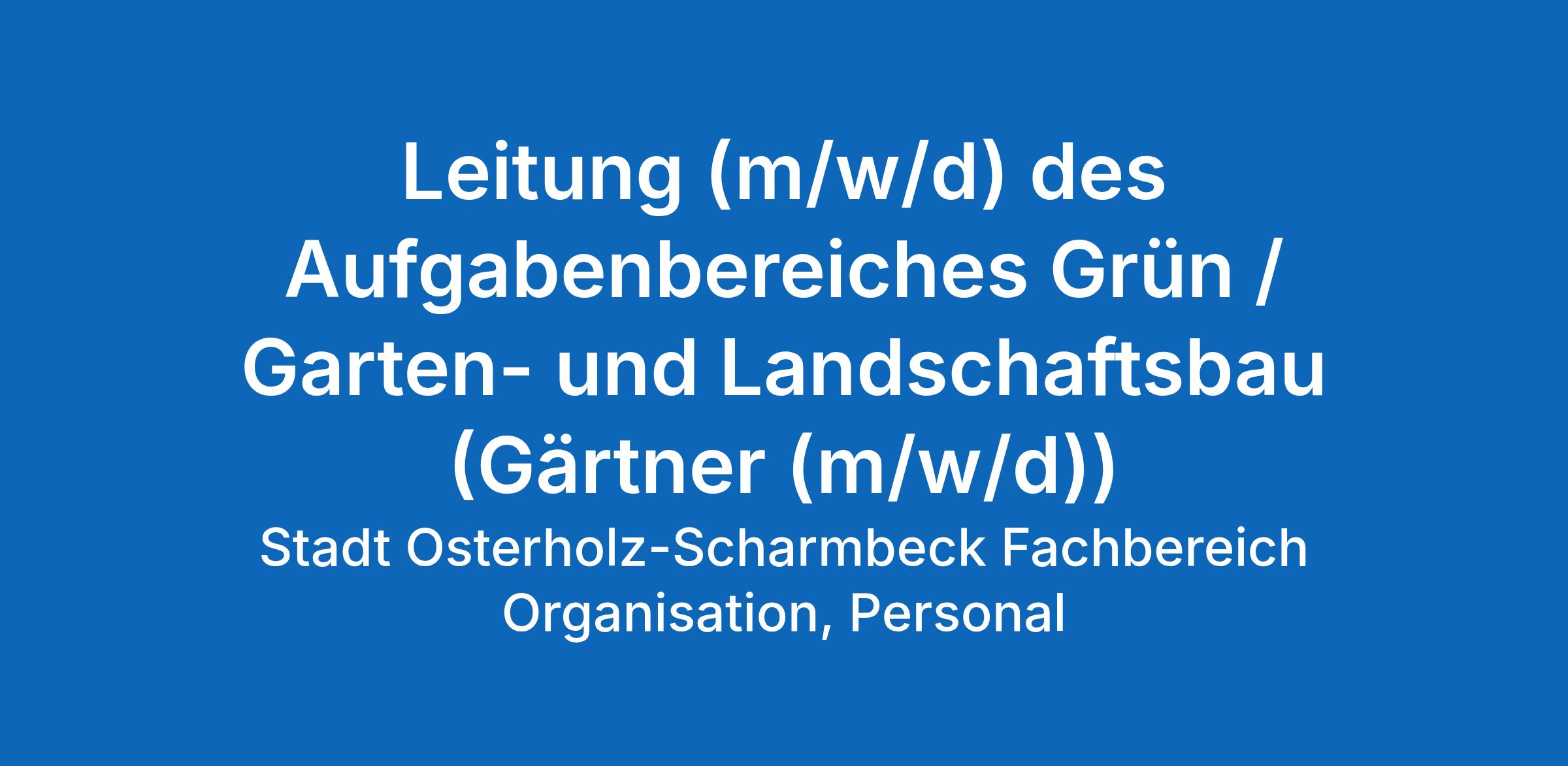 Die Stadt Osterholz-Scharmbeck ist bestrebt, die Gleichstellung der Geschlechter zu realisieren, und begrüßt daher die Bewerbung von Männern sowie von Menschen mit dem Geschlechtseintrag „divers“.