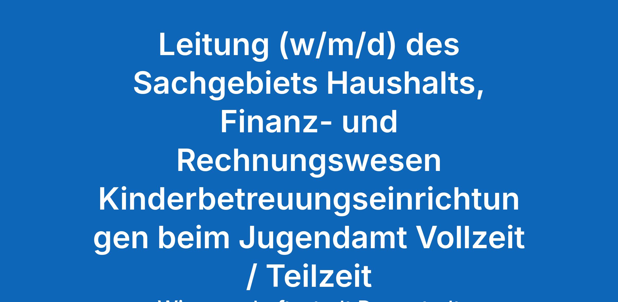 Leitung (w/m/d) des Sachgebiets Haushalts, Finanz- und Rechnungswesen Kinderbetreuungseinrichtungen beim Jugendamt