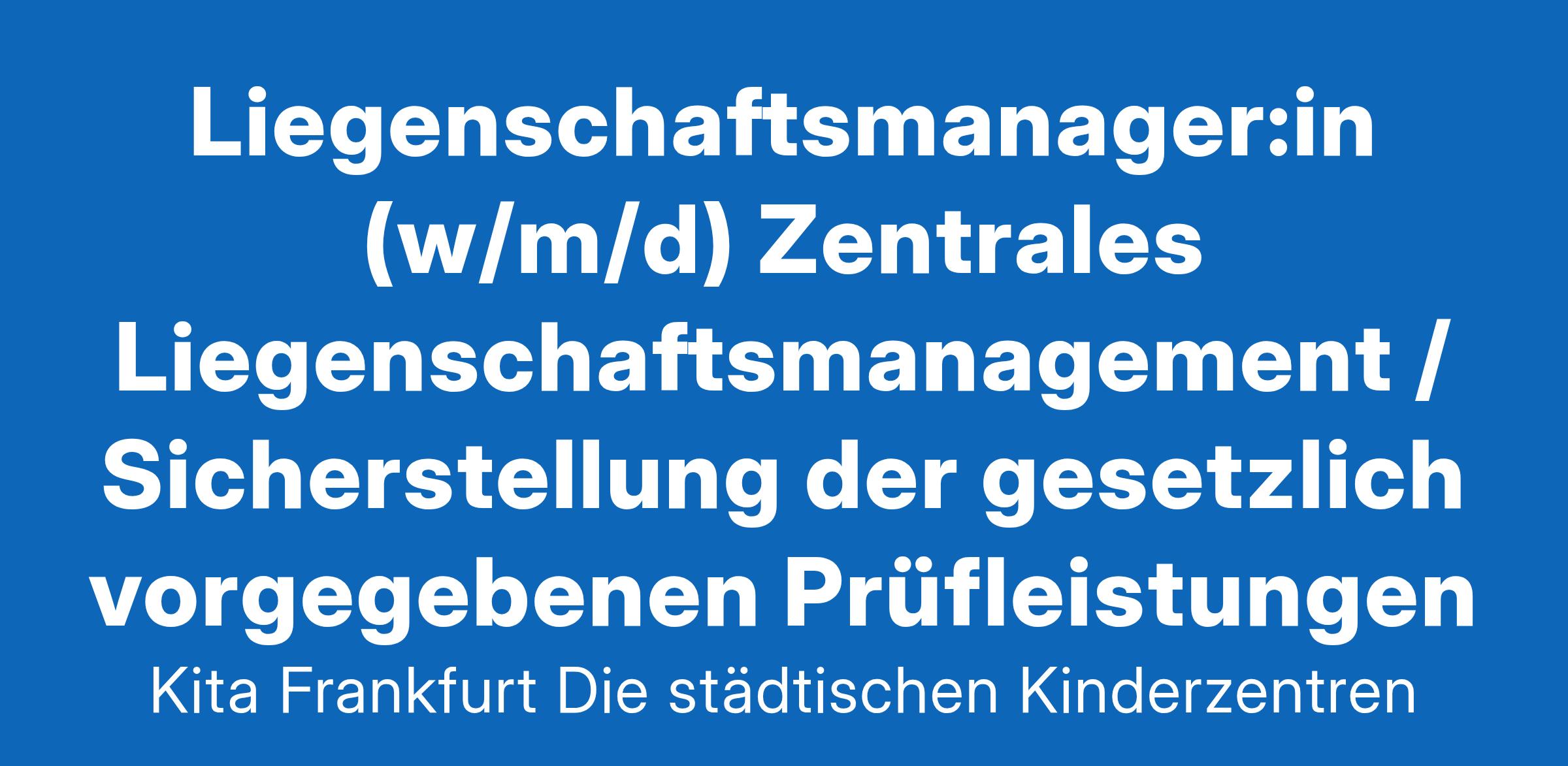 Eine Stadt für Kinder braucht echte Profis. Darum suchen wir Sie als Liegenschaftsmanager:in (w/m/d) im Zentralen Liegenschaftsmanagement. Im großen Eigenbetrieb im Stadt-Up Frankfurt. Schaffen Sie gemeinsam mit uns ein sicheres und anregendes Umfeld für die Kinder dieser Stadt. Bereit für einen Job mit Herz und Verstand? Bewerben Sie sich jetzt und gestalten Sie mit uns die Stadt von morgen!