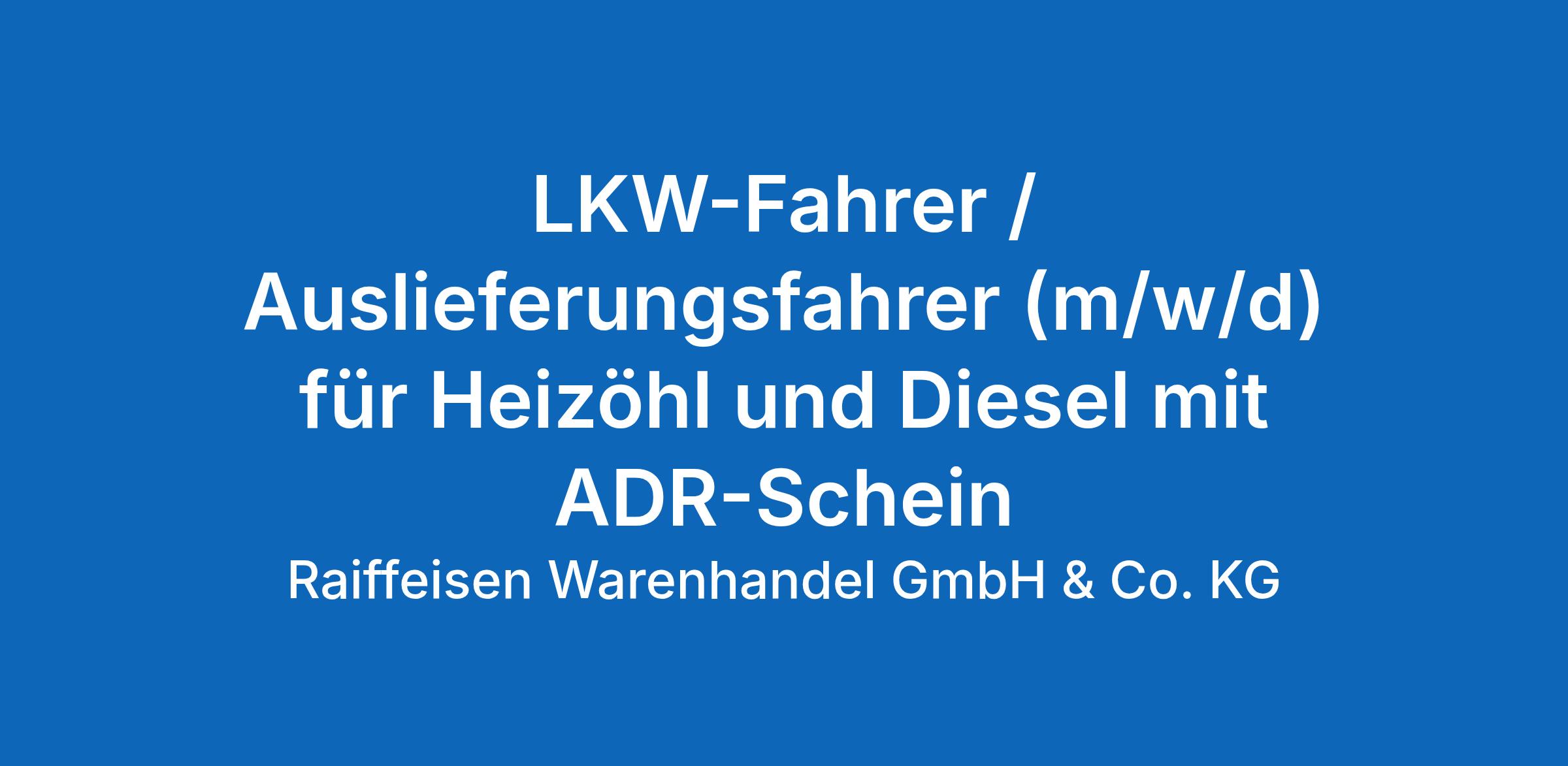 LKW-Fahrer / Auslieferungsfahrer (m/w/d) für Heizöl und Diesel mit ADR-Schein
