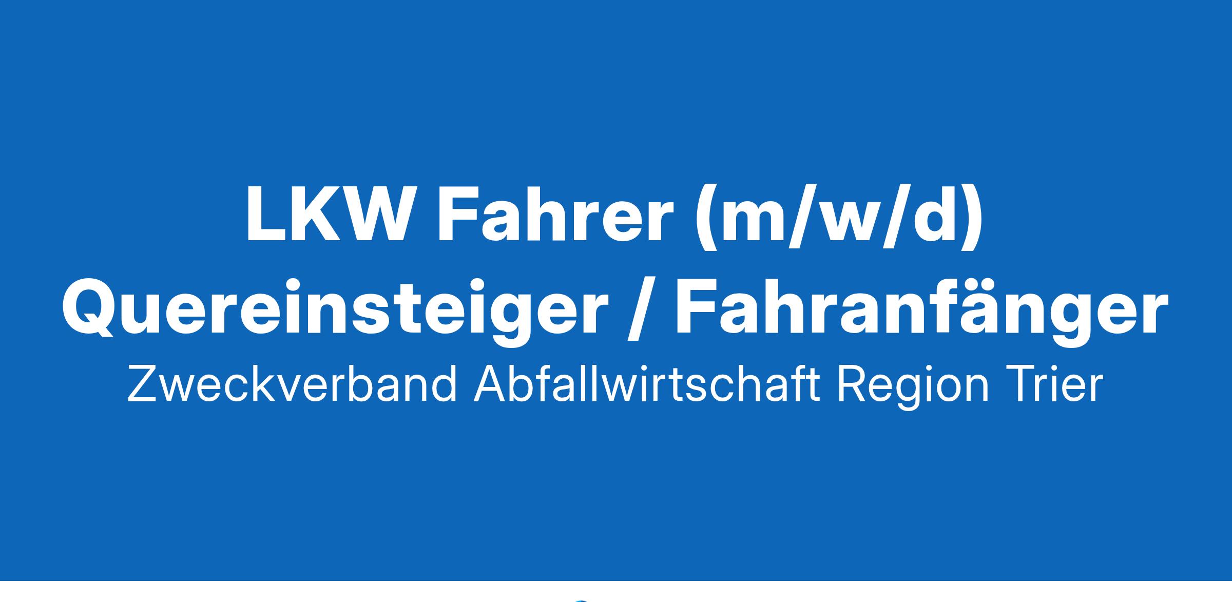 Wir suchen zum nächstmöglichen Zeitpunkt eine/n LKW Fahrer (m/w/d) Quereinsteiger / Fahranfänger Willkommen im Team des A.R.T. Mit 400 engagierten Fachleuten machen wir uns gemeinsam stark für eine saubere Zukunft und eine nachhaltige Kreislaufwirtschaft. Unser Angebot für Ihren langfristigen Einsatz beim A.R.T. Kontinuierliche Entwicklung vom Quereinsteiger / Fahranfänger zum Stammfahrer mit den dazugehörigen finanziellen Aufstiegsmöglichkeiten. Wohnortnaher Einsatz mit guter Vereinbarkeit von Familie und Beruf. Geregelte Arbeitszeiten mit Zeiterfassung. Tarifliches Gehalt gemäß TVöD und betriebliche Altersvorsorge. Moderne Fahrzeuge mit umfangreicher Sonderausstattung. Sie arbeiten im festen Team mit tollen Kollegen, die Ihnen mit Rat und Tat zur Seite stehen. Kostenlose und hochwertige Arbeitskleidung. Schnelle und unkomplizierte Einstellung beim A.R.T. Ihre wesentlichen Aufgaben: Als Berufskraftfahrer transportieren Sie alle Abfälle von Altpapier bis zum Sperrabfall mit unseren Sammelfahrzeugen im gesamten A.R.T. Gebiet. Sie halten das Fahrzeug in Schuss und sorgen für seine Pflege. In der Einarbeitung und im Bedarfsfall springen Sie als Müllwerker / Lader ein und beladen unsere Sammelfahrzeuge. Ihr Profil: Schulabschluss. Sie besitzen einen Führerschein der Klasse C mit der Eintragung 95. Einsatzbereitschaft, Pünktlichkeit, Zuverlässigkeit und Freude an der Tätigkeit runden Ihr Profil ab. Ihre Vorteile vom A.R.T.: 30 Tage Urlaub Tarifliches Gehalt gemäß TVöD Betriebliche Altersvorsorge Gesundheitsförderung z.B. Zuschuss zum Fitnessstudio Zuschuss ÖPNV Kostenloser Parkplatz Schwerbehinderte Bewerberinnen und Bewerber werden bei gleicher Eignung besonders berücksichtigt. Wir freuen uns auf Ihre Bewerbungsunterlagen unter Angabe Ihrer Verfügbarkeit über unsere Internetseite www.art-trier.de/jobs Ansprechpartner:Christian Mildenberger (0651 9491 1300) JETZT BEWERBEN Zweckverband Abfallwirtschaft Region Trier (A.R.T.) www.art-trier.de LKW-Fahrer Fahrer Nutzfahrzeug Berufskraftfahrer Nahverkehr Fernverkehr Lastkraftwagen Kommissionieren Kommissionierer Fahrer LKW C1 C C1E CE Fahrzeugpflege Auslieferungsfahrer Fernverkehr Kraftfahrer Fernfahrer