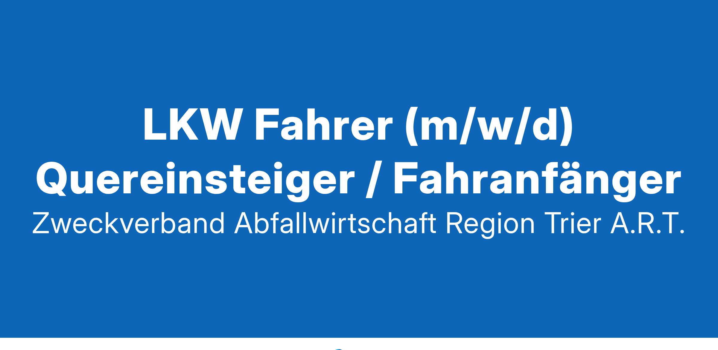 Ihre Vorteile vom A.R.T.: 30 Tage Urlaub ++ Tarifliches Gehalt gemäß TVöD ++ Betriebliche Altersvorsorge ++ Gesundheitsförderung z.B. Zuschuss zum Fitnessstudio ++ Zuschuss ÖPNV ++ Kostenloser Parkplatz Schwerbehinderte Bewerberinnen und Bewerber werden bei gleicher Eignung besonders berücksichtigt. Wir freuen uns auf Ihre Bewerbungsunterlagen unter Angabe Ihrer Verfügbarkeit über unsere Internetseite www.art-trier.de/jobs Ansprechpartner:Christian Mildenberger (0651 9491 1300) JETZT BEWERBEN! Zweckverband Abfallwirtschaft Region Trier (A.R.T.) www.art-trier.de