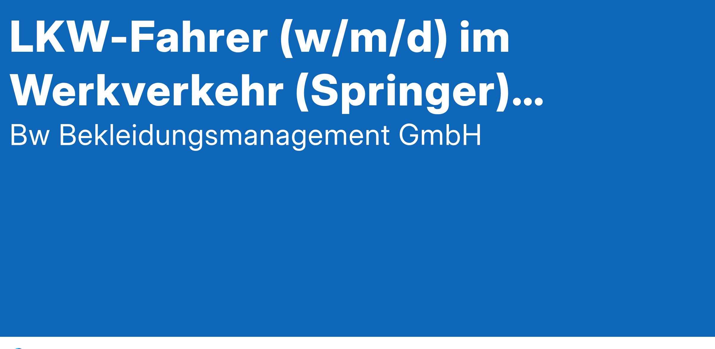 LKW-Fahrer (w/m/d) im Werkverkehr (Springer) (Nahverkehr/Fernverkehr innerdeutsch)
