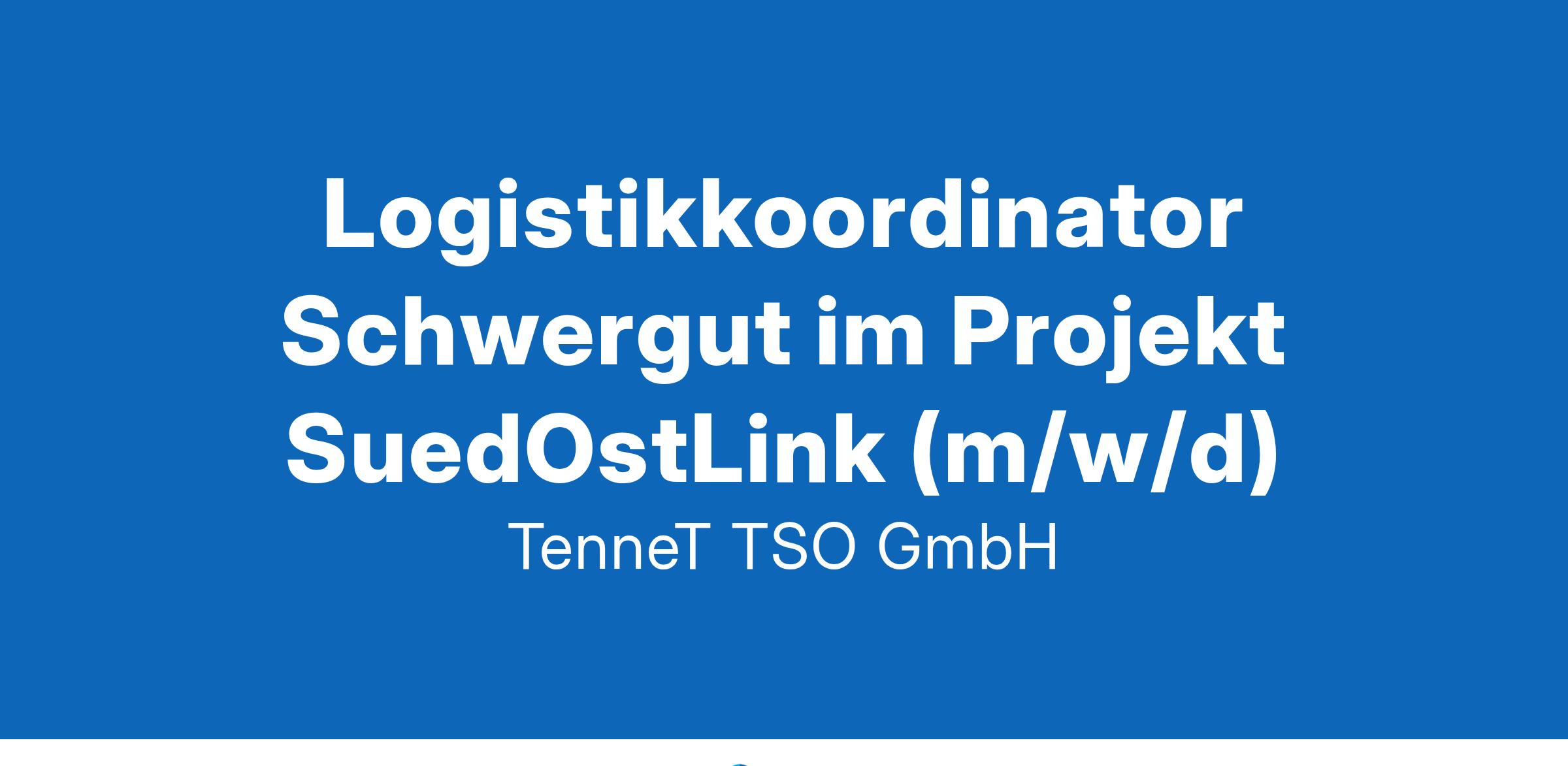 TenneT Home PageLogistikkoordinator Schwergut im Projekt SuedOstLink (m/w/d)Apply nowTenneT ist im Wachstum, um seine strategischen Ziele zu erreichen: Wir packen den Umbruch der Energieversorgung an. Wir machen Energiewende! Mach mit - durch einen Job, der wirklich etwas bewegt! Wir suchen einen leidenschaftlichen Logistikkoordinator (m/w/d) am Standort Bayreuth und im Homeoffice, vielleicht bist Du das?