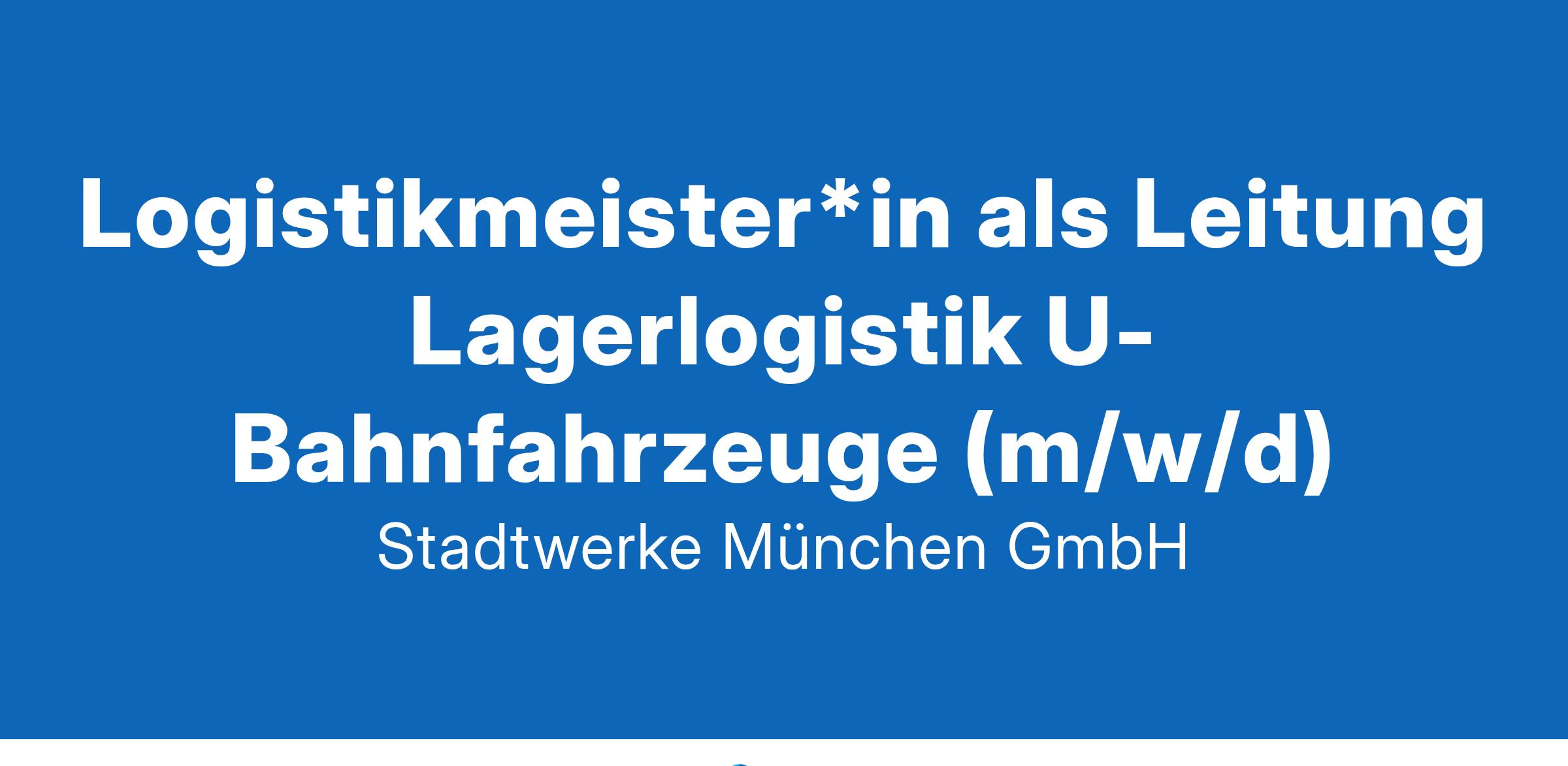 Wir, die Stadtwerke München, sind einer der größten regionalen Arbeitgeber und unsere Mission ist es München rund um die Uhr am Laufen zu halten. Unsere Vision dahinter: München zu einem leuchtenden Beispiel einer vernetzten, nachhaltigen und vor allem lebenswerten Stadt zu machen.Unser Team Werksteuerung, Instandhaltungsplanung & Logistik U-Bahnbahnfahrzeuge hat seinen Arbeitsplatz an unserem Standort in der Technischen Basis Fröttmaning. Als Leitung Logistik führen Sie hier ein Team von 12 Kolleg*innen. Logistikmeister*in als Leitung Lagerlogistik U-Bahnfahrzeuge (m/w/d) Logistik | U-Bahnfahrzeuge | Stadtwerke München GmbH Das können Sie bei uns bewegenFührung und Entwicklung der Mitarbeiter*innen: Sie führen, motivieren und entwickeln unser Team gemäß den SWM-Führungsgrundsätzen
