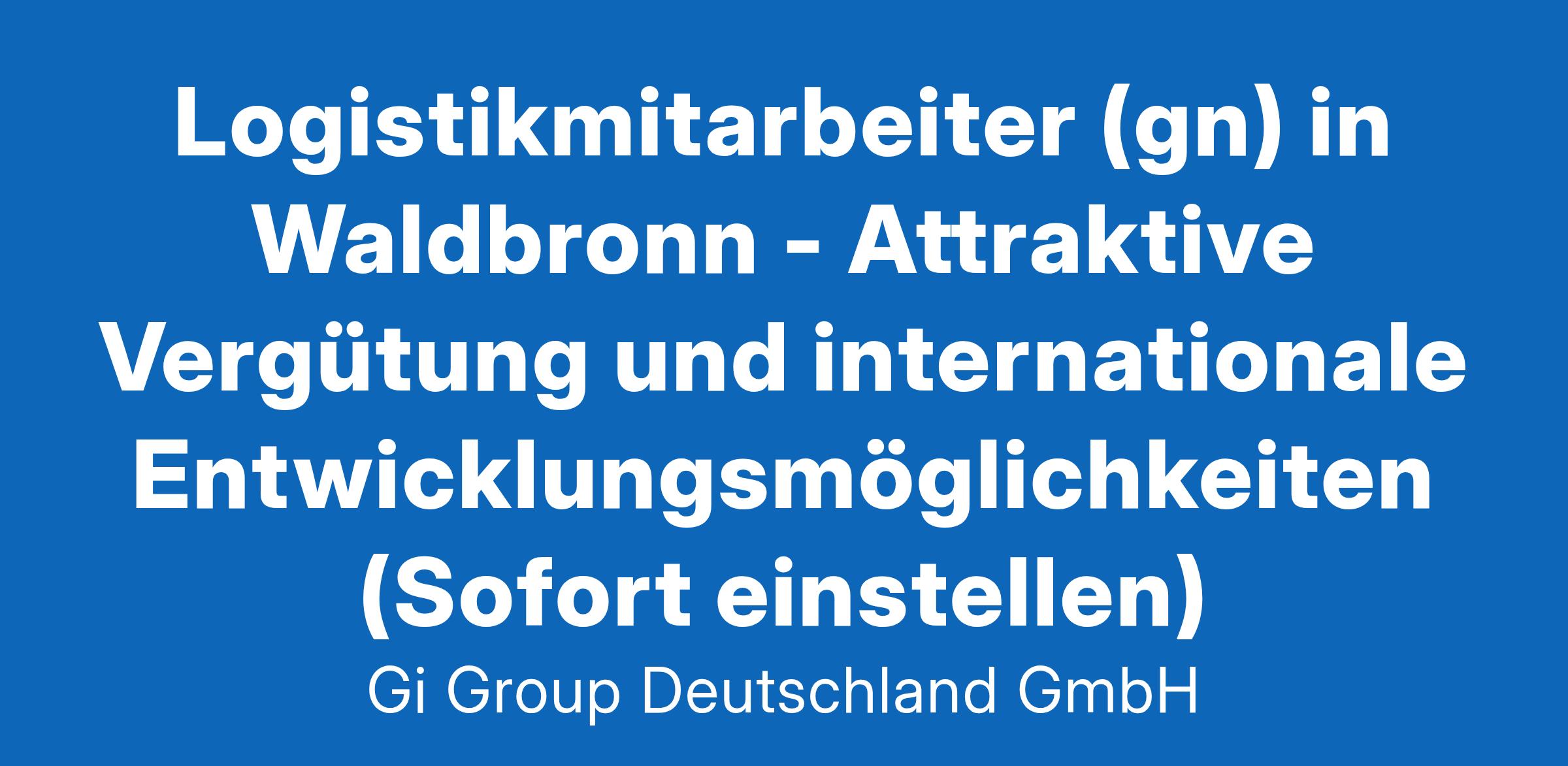 Logistikmitarbeiter (gn) in Waldbronn ab sofort in Vollzeit Die Gi Group ist ein international agierender Personaldienstleister mit mehr als 500 Standorten in 40 Ländern. Unser Angebot Attraktive Vergütung ab 15,23 €/Std.steigend mit Betriebszugehörigkeit Gute Erreichbarkeit mit dem PKW und nahegelegene Parkplätze vorhanden Vielfältige Entwicklungsmöglichkeiten mit dem Netzwerk eines internationalen Unternehmens Zahlreiche Mitarbeitervorteile in Form von Corporate Benefits Dein Profil Idealerweise erste Erfahrungen im Kundenservice Sicherer Umgang mit dem PC und Erfahrung mit SAP ist wünschenswert Ein hohes Servicelevel, kundenorientiert sowie teamfähig Fließende Deutsch- sowie verhandlungssichere Englischkenntnisse Deine Aufgaben als Logistikmitarbeiter Produktbestellungsabwicklung, Kundendienstanfragen, Produktänderungen oder Rücksendungen Erledigung von Servicefunktionen vor und nach dem Verkauf sowie transportbezogene Angelegenheiten Logistikkoordination, Auftragsabwicklung sowie bei Services und Prozesse unterstützen Unterstützung bei der Herstellung von Produkten Deine Bewerbung Für Deine Bewerbung als Logistikmitarbeiter klicke bitte einfach auf „Jetzt bewerben“. Dort kannst Du Deine Kontaktdaten eingeben sowie Deinen Lebenslauf und Deine Bewerbungsunterlagen hochladen. Du benötigst dafür nur ca. 1 Minute. Dein zuständiger Personaldisponent wird sich bei Dir schnellstmöglich melden. Gerne kannst Du uns auch Deine Bewerbungsunterlagen per E-Mail zusenden. Wir freuen uns auf Deine Bewerbung! Unsere Stellenangebote richten sich an Arbeitssuchende jeglichen Geschlechts. (gn) = geschlechtsneutral. Kontakt Gi Group Recruiting Team